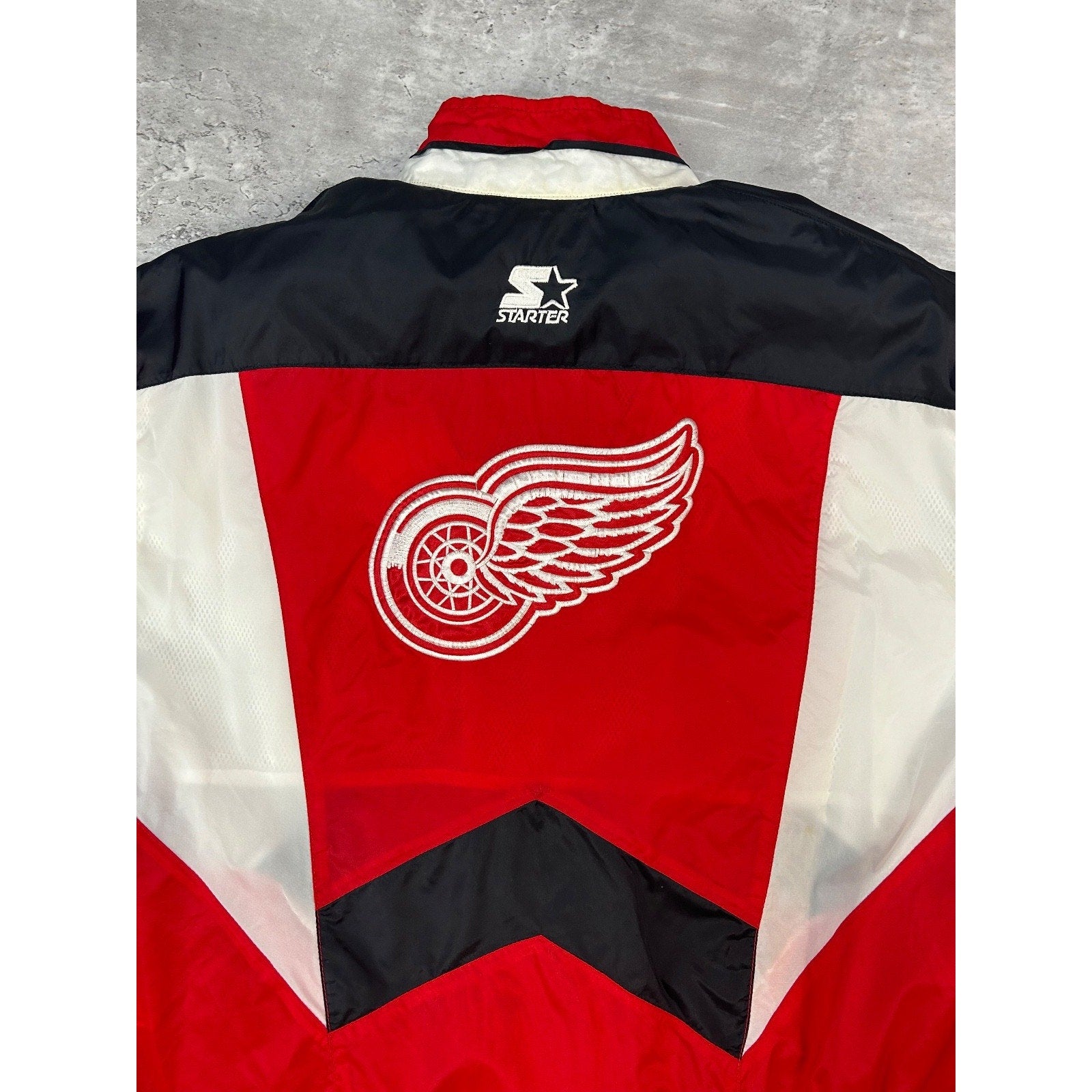 Vintage 90s Detroit Red Wings NHL Embroidered Starter Nylon Jacket Size Medium