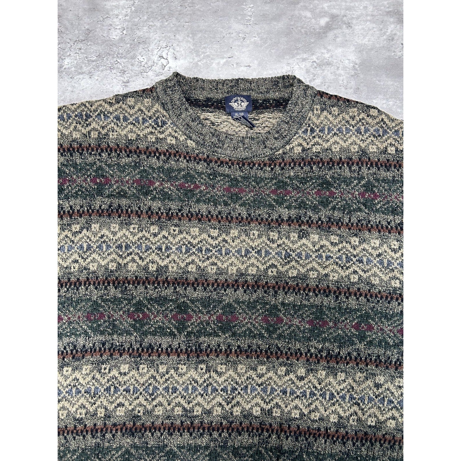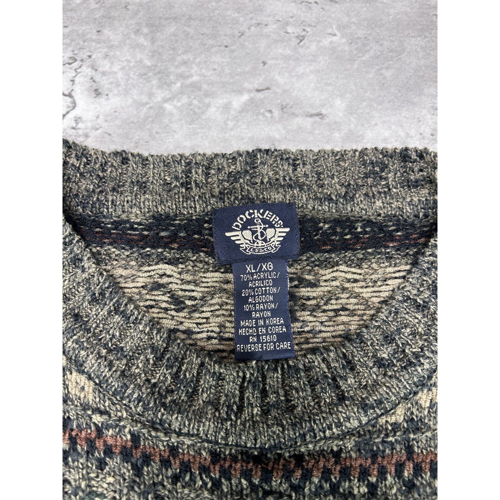 Vintage 90s Dockers Striped Print Pullover Knit Sweater Size XL