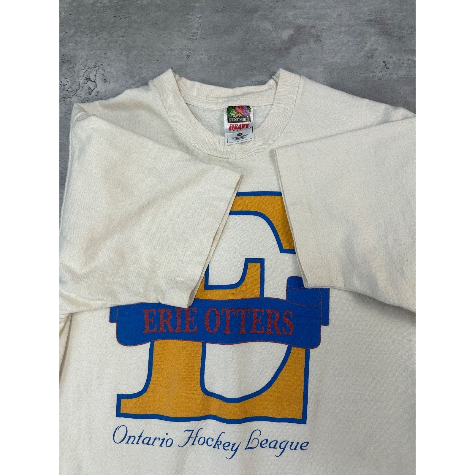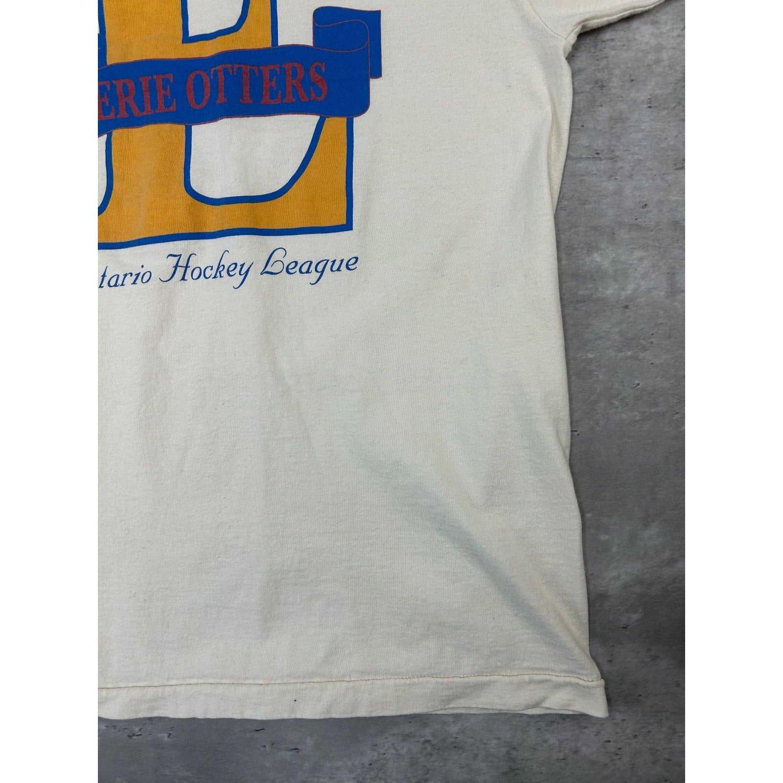 Vintage 90s Erie Otters OHL Graphic Spellout Hockey T-Shirt Size Medium White