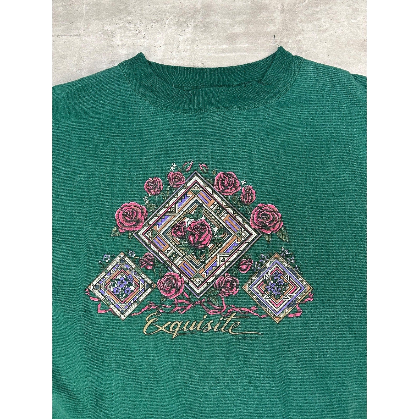 Vintage 90s Exquisite Rose Graphic Nature Crewneck Sweatshirt Size Medium