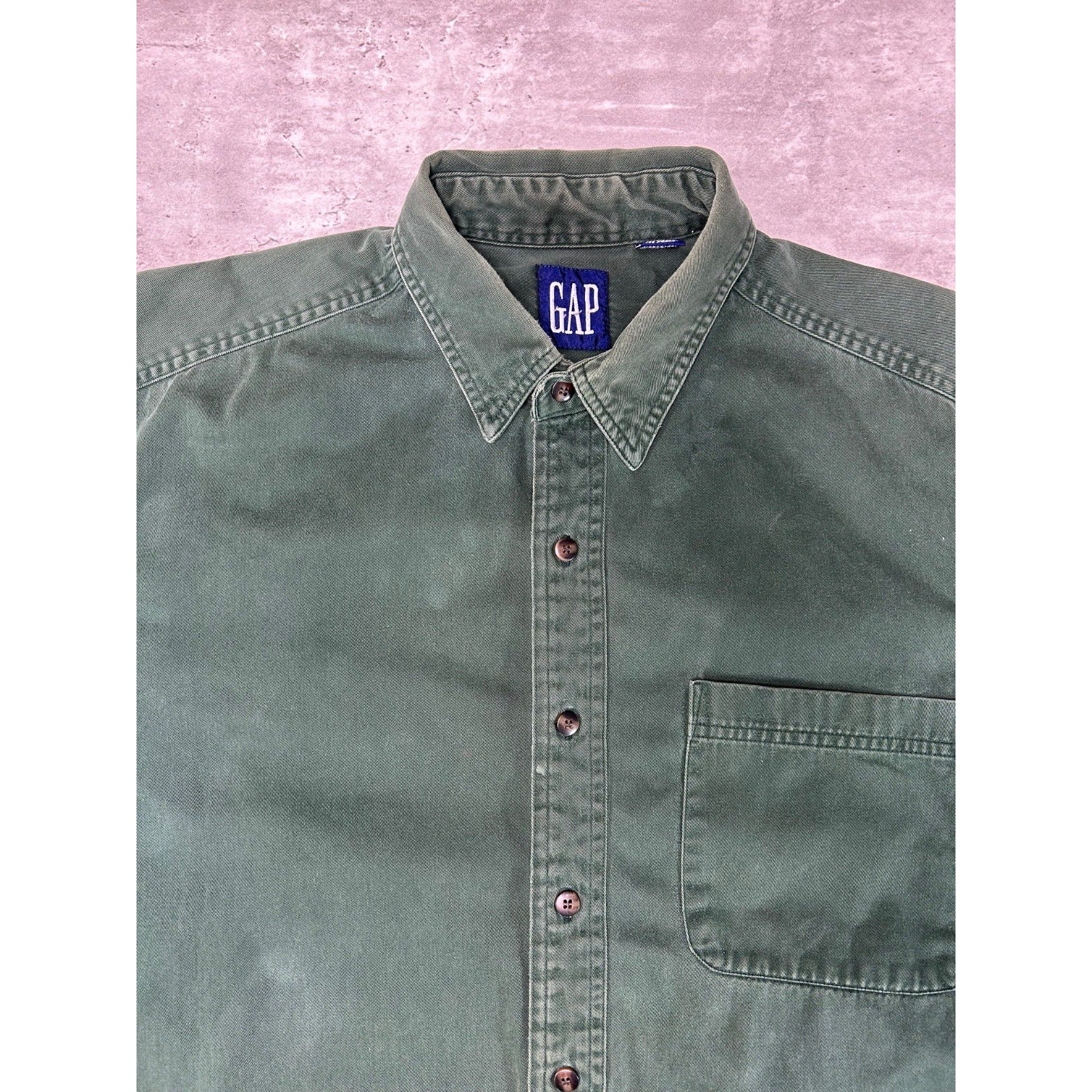 Vintage 90s Gap Single Pocket Long Sleeve Button Up Shirt Size XL Green