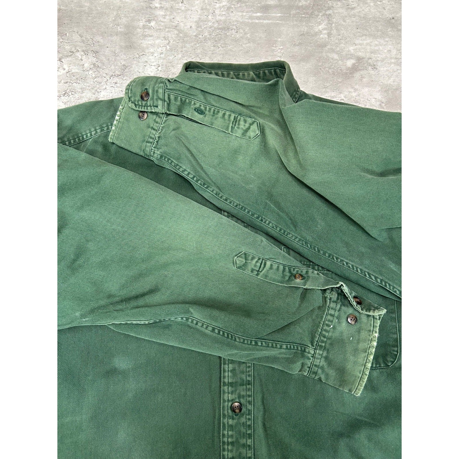 General wear, fading due to age. Fraying/distressing on cuffs. Small paint marks found around.