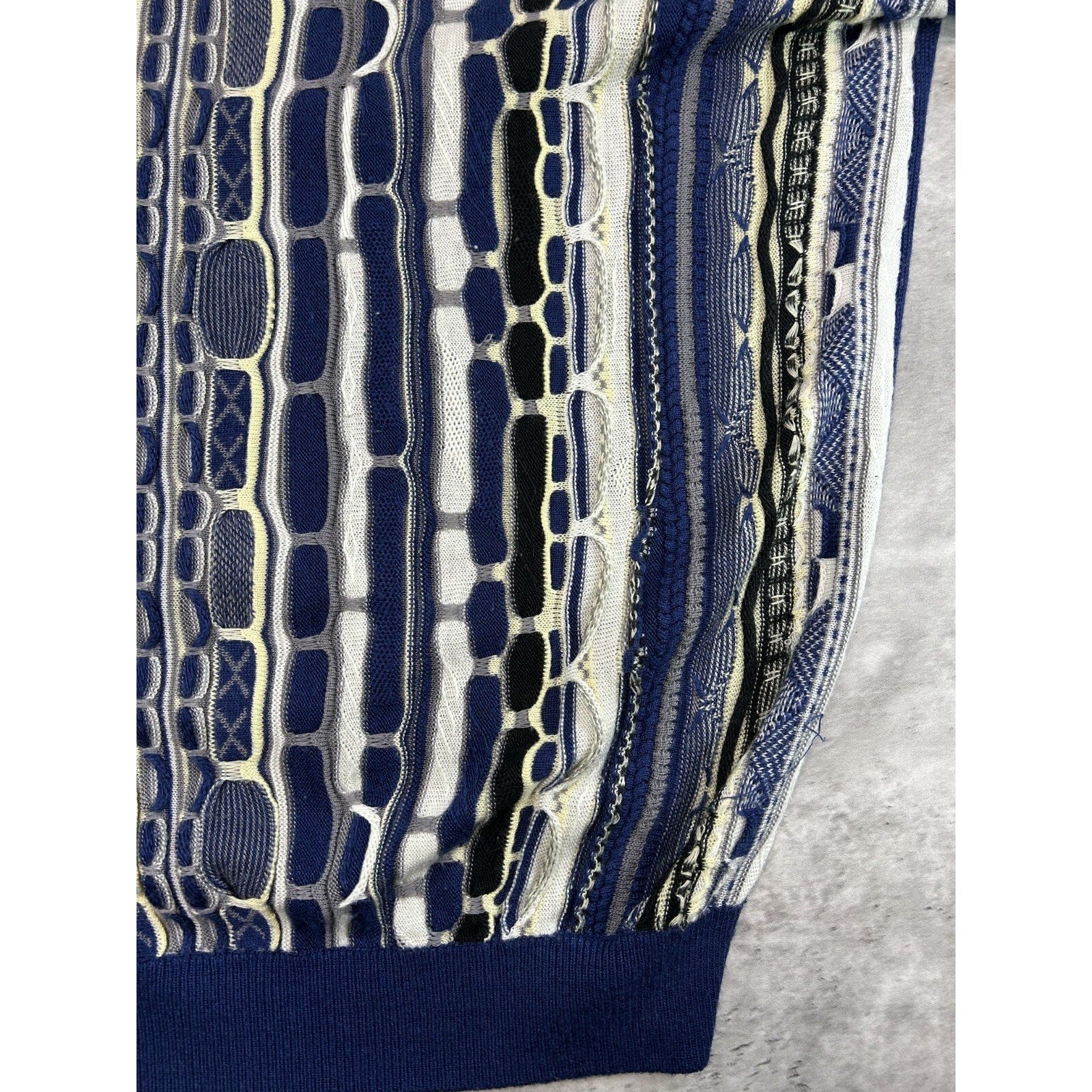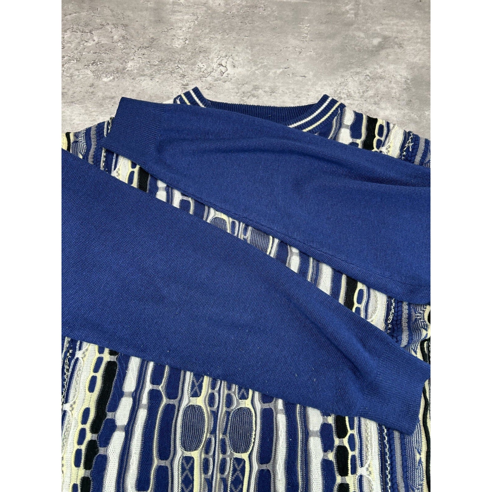 Vintage 90s Gochu Ribbed Abstract 3D Knit Sweater Size Large Blue