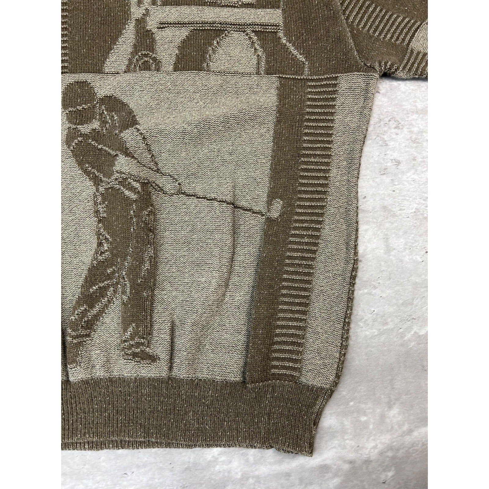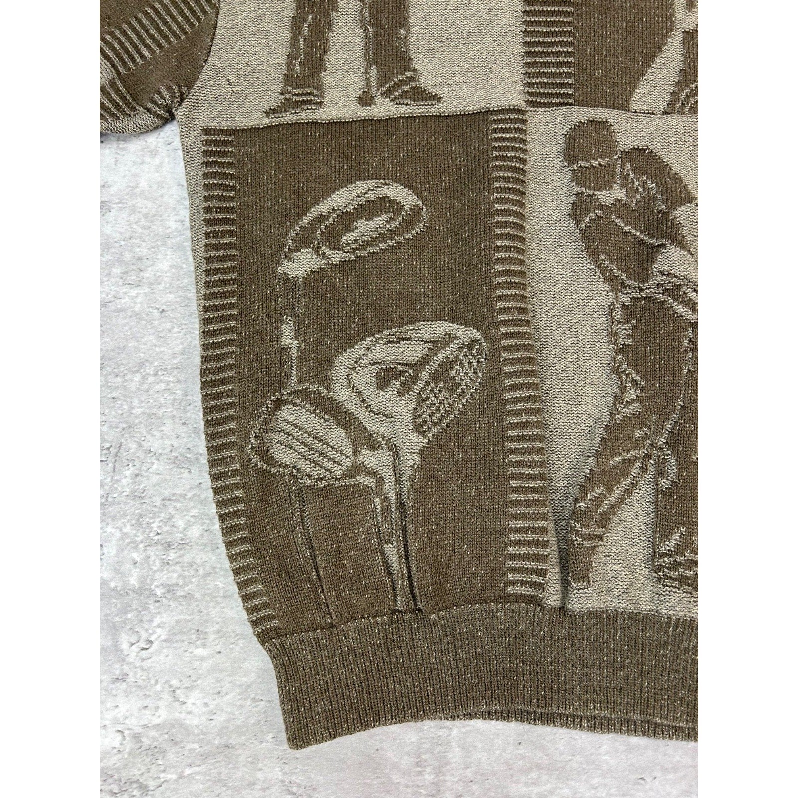 Vintage 90s Golf Paneled Graphic Pullover Ribbed Knit Sweater Size Large