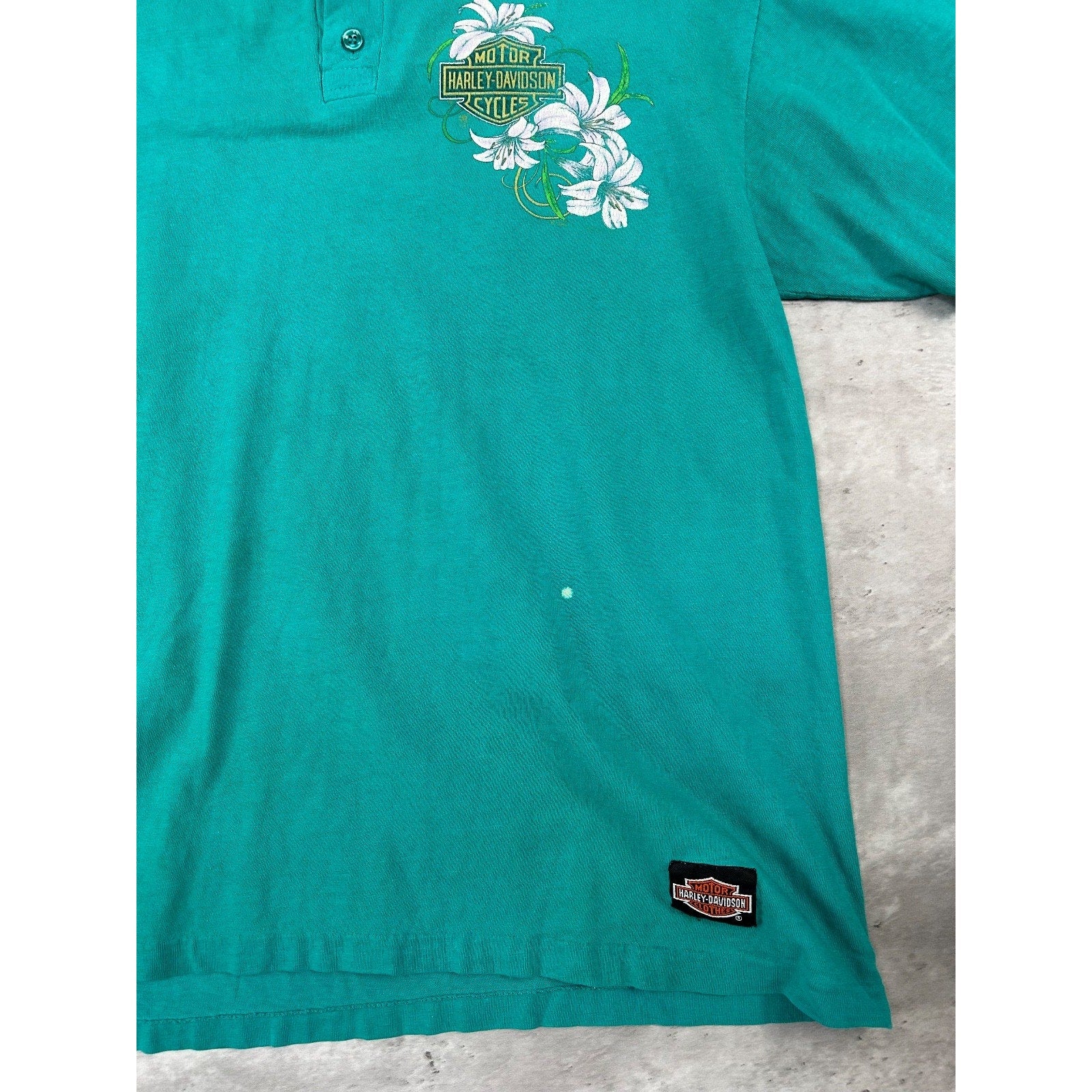 Vintage 90s Harley Davidson Floral Classic Logo Graphic 1/4 Button T-Shirt Sz L