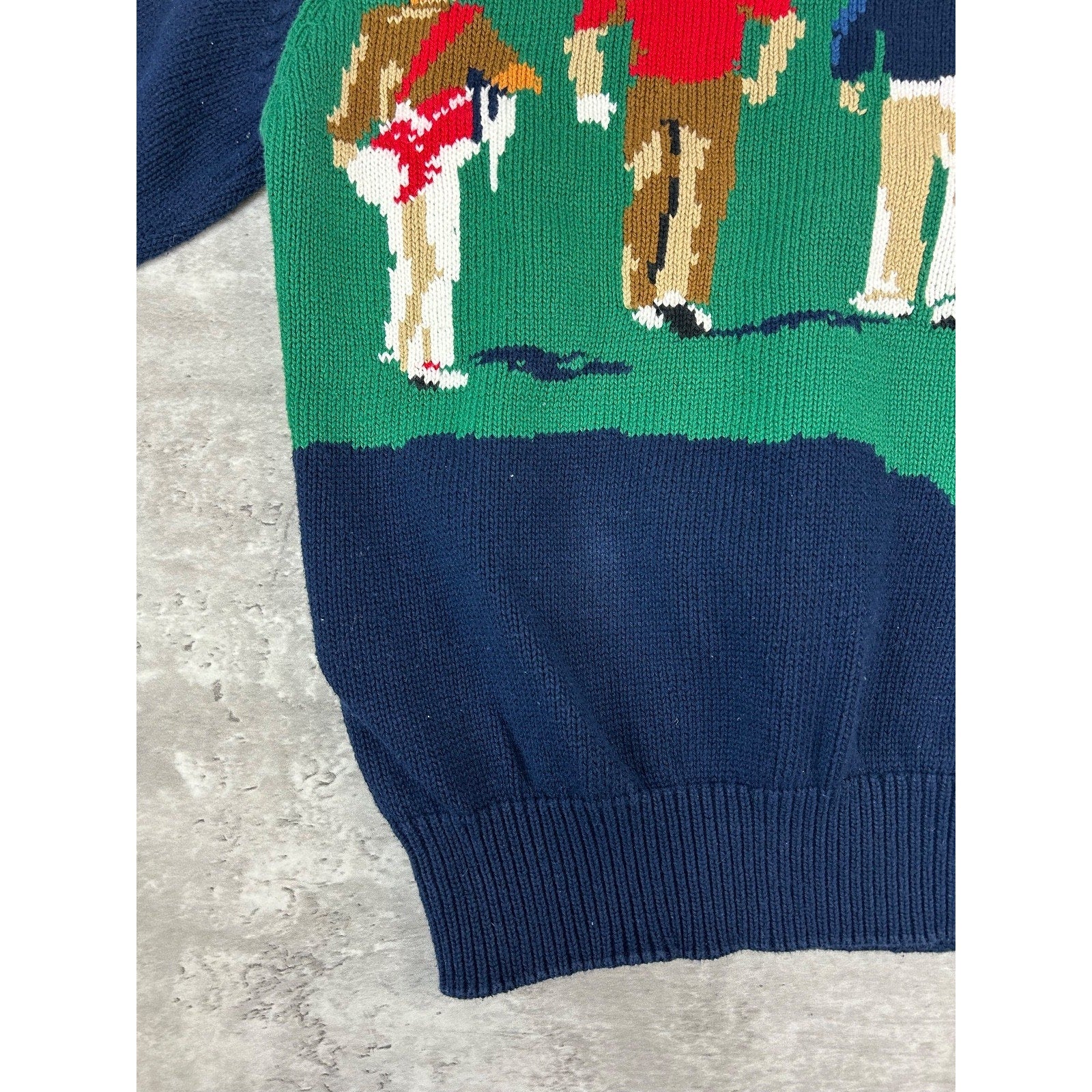 Vintage 90s Hathaway Golfers Graphic Print Pullover Knit Sweater Size Medium