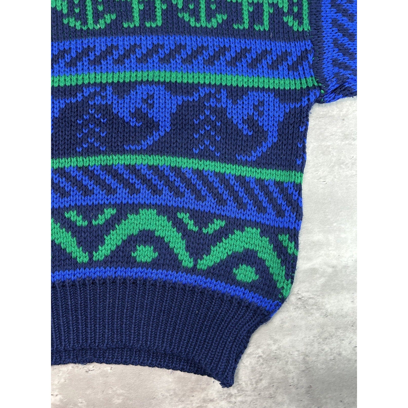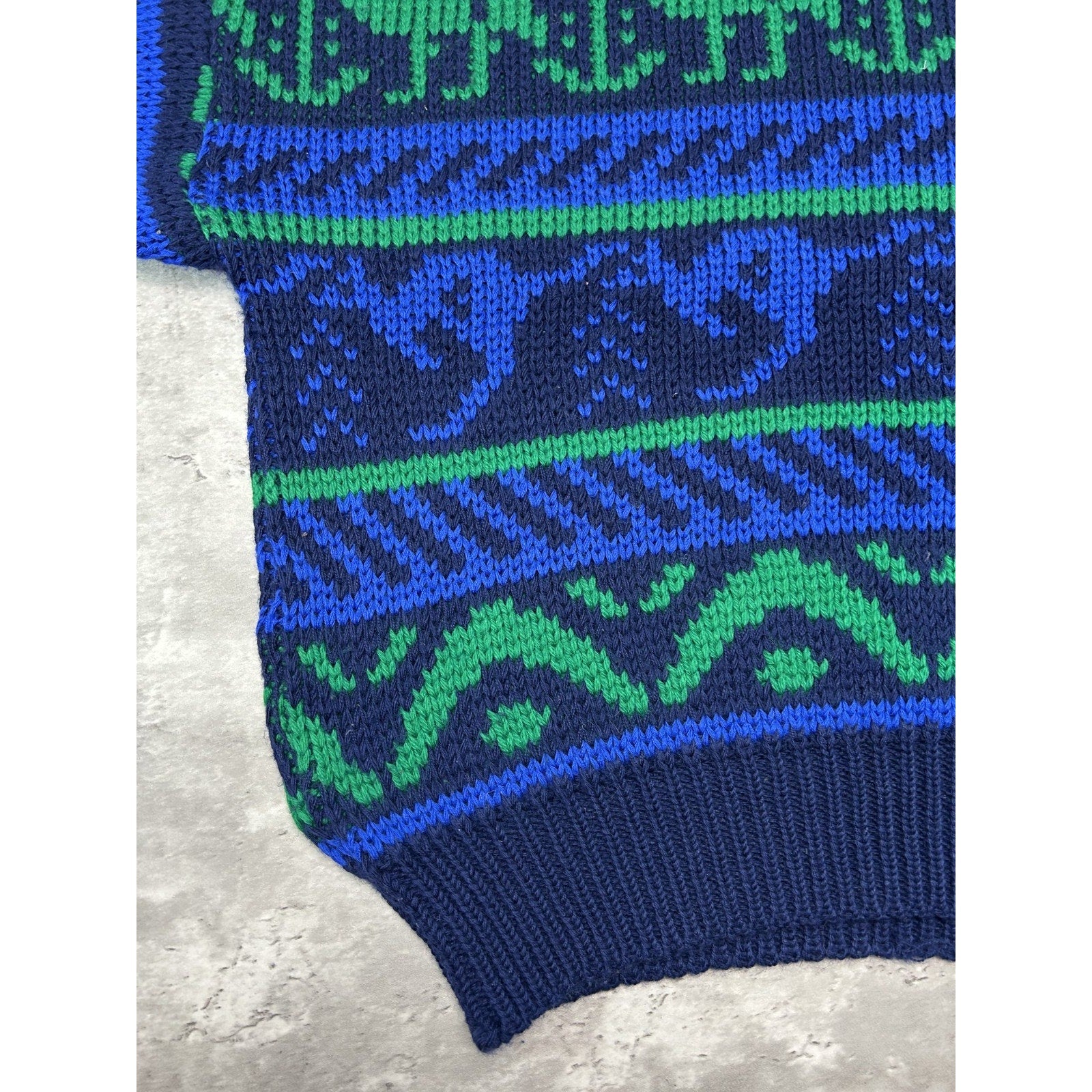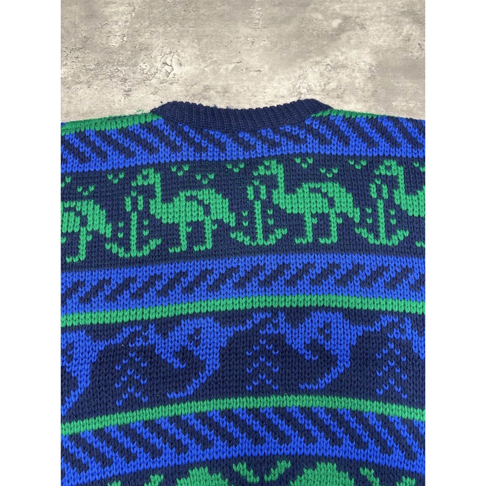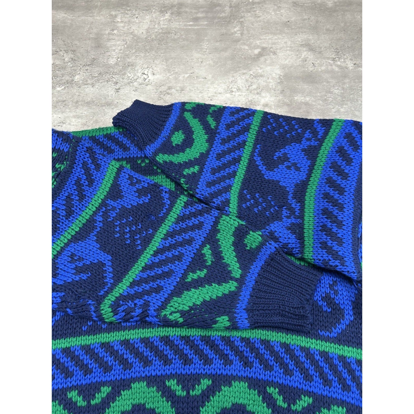 Vintage 90s Hysport Animal All Over Print Striped Pullover Knit Sweater Sz Large