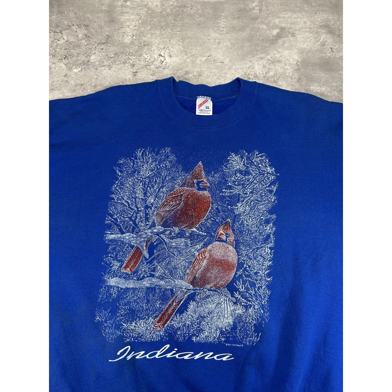 Vintage 90s Indiana Cardinal Nature Wildlife Graphic Sweatshirt Size XL Blue