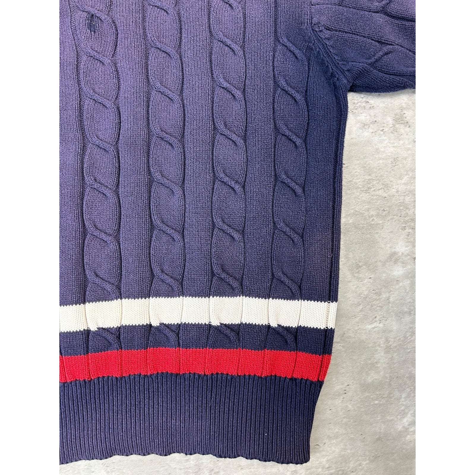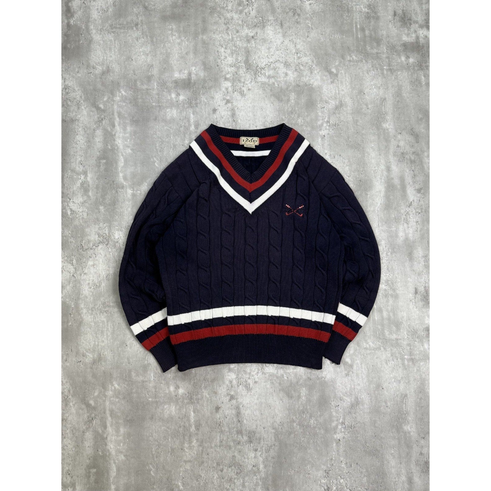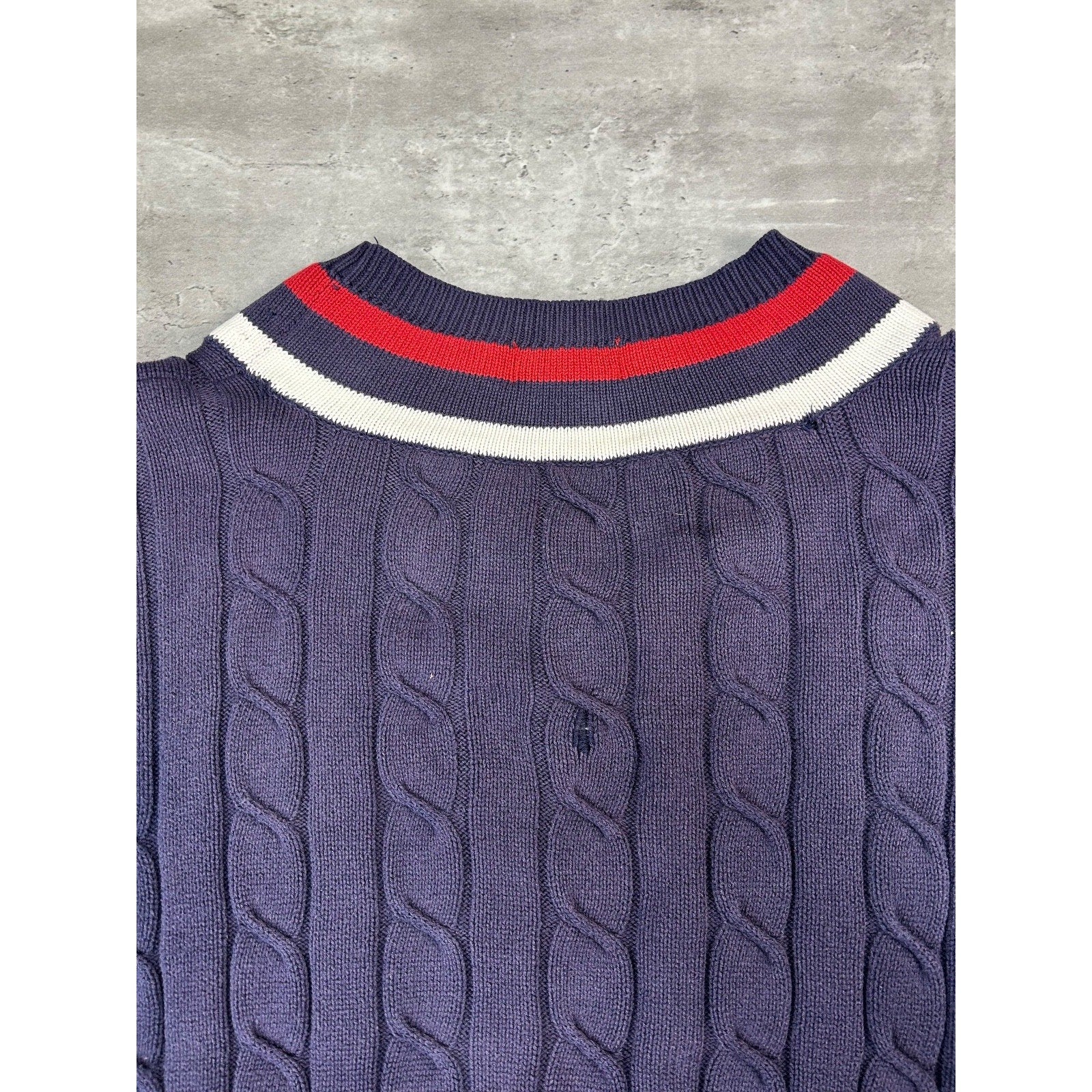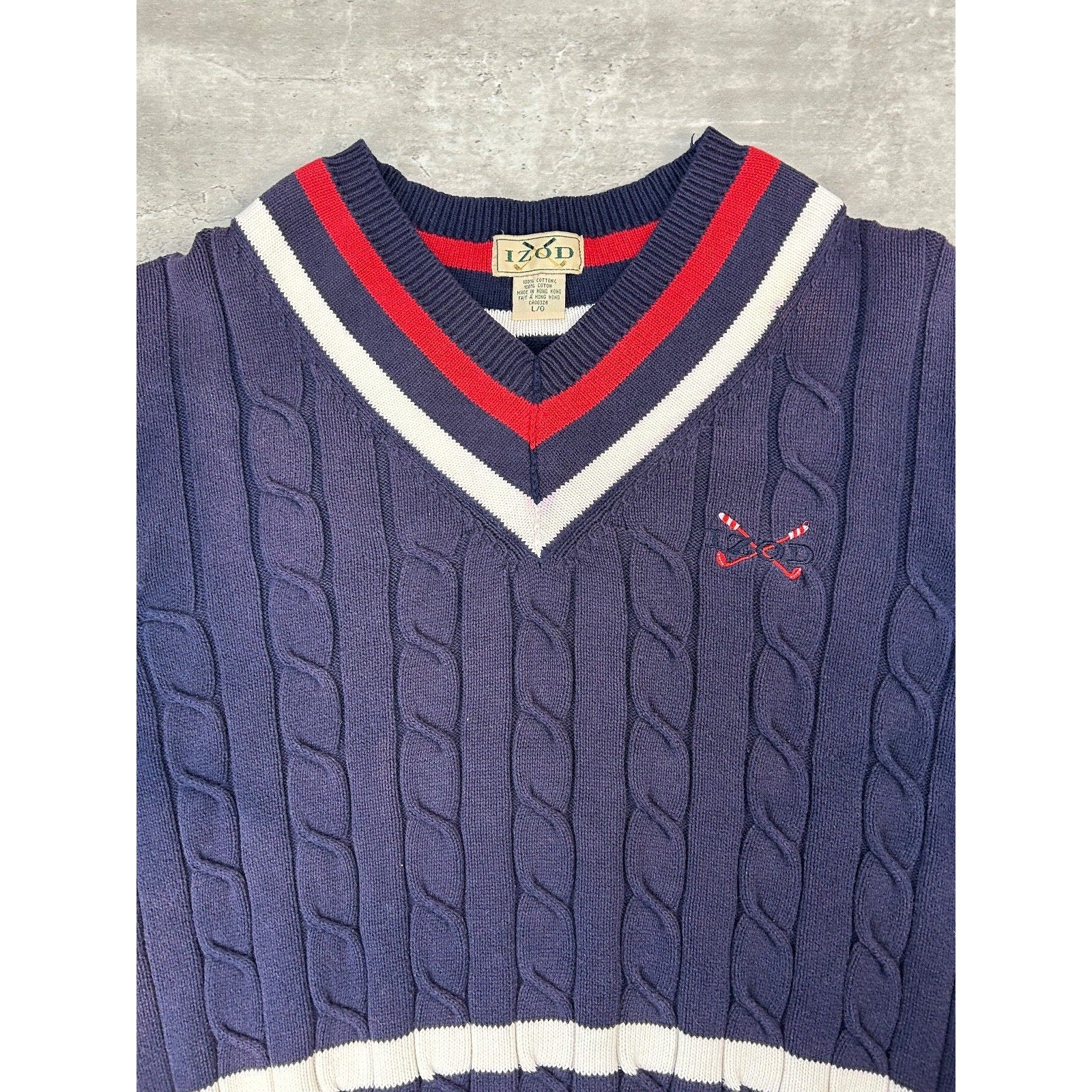 Vintage 90s Izod Embroidered Spellout Cable Knit V-Neck Sweater Size Large