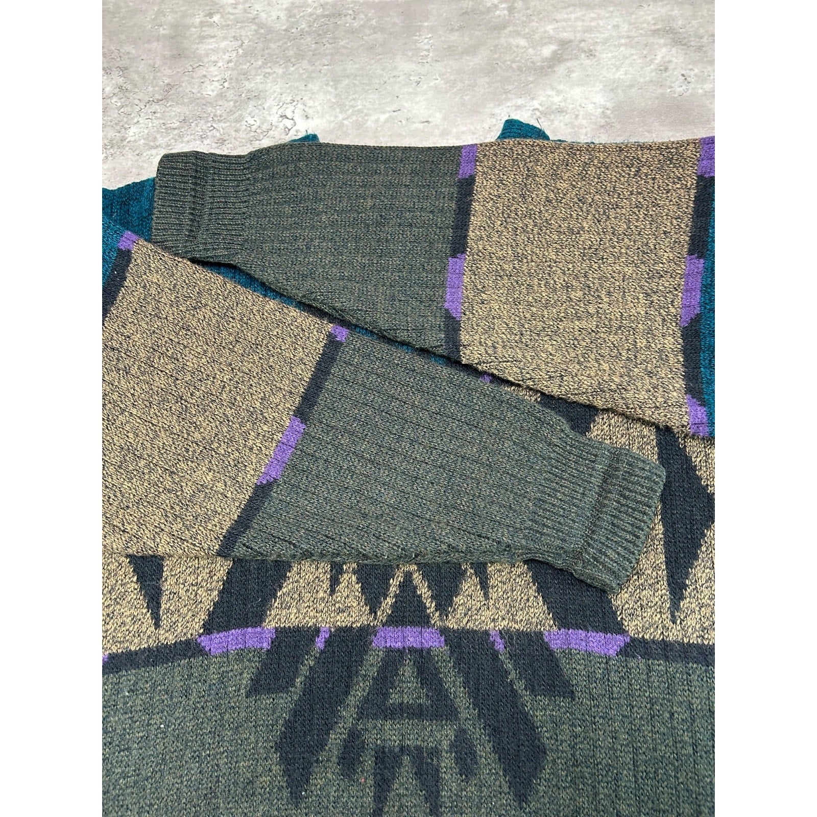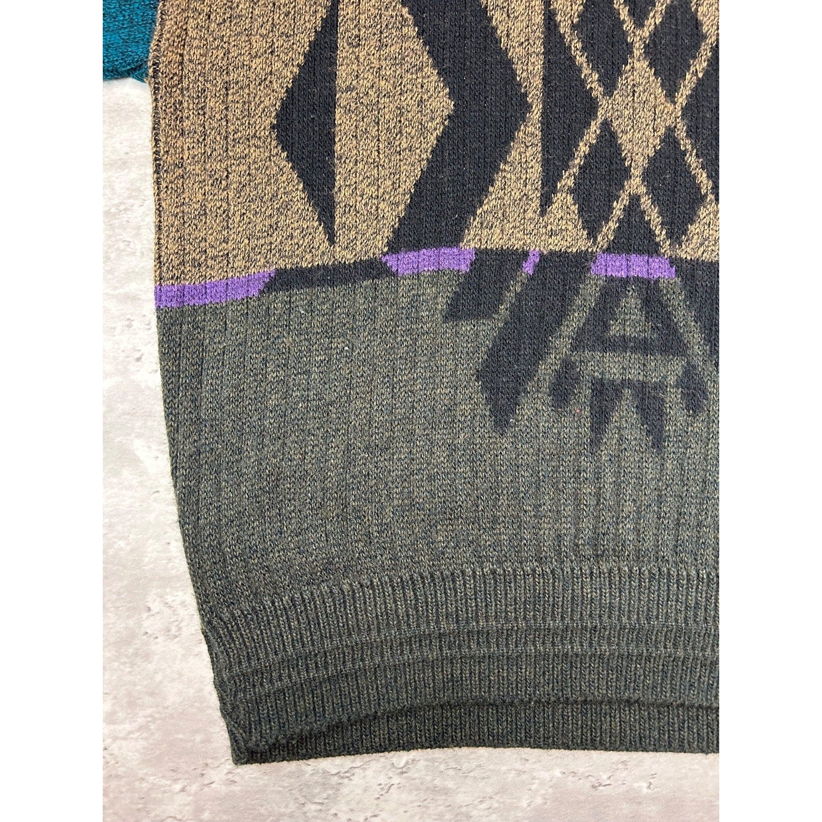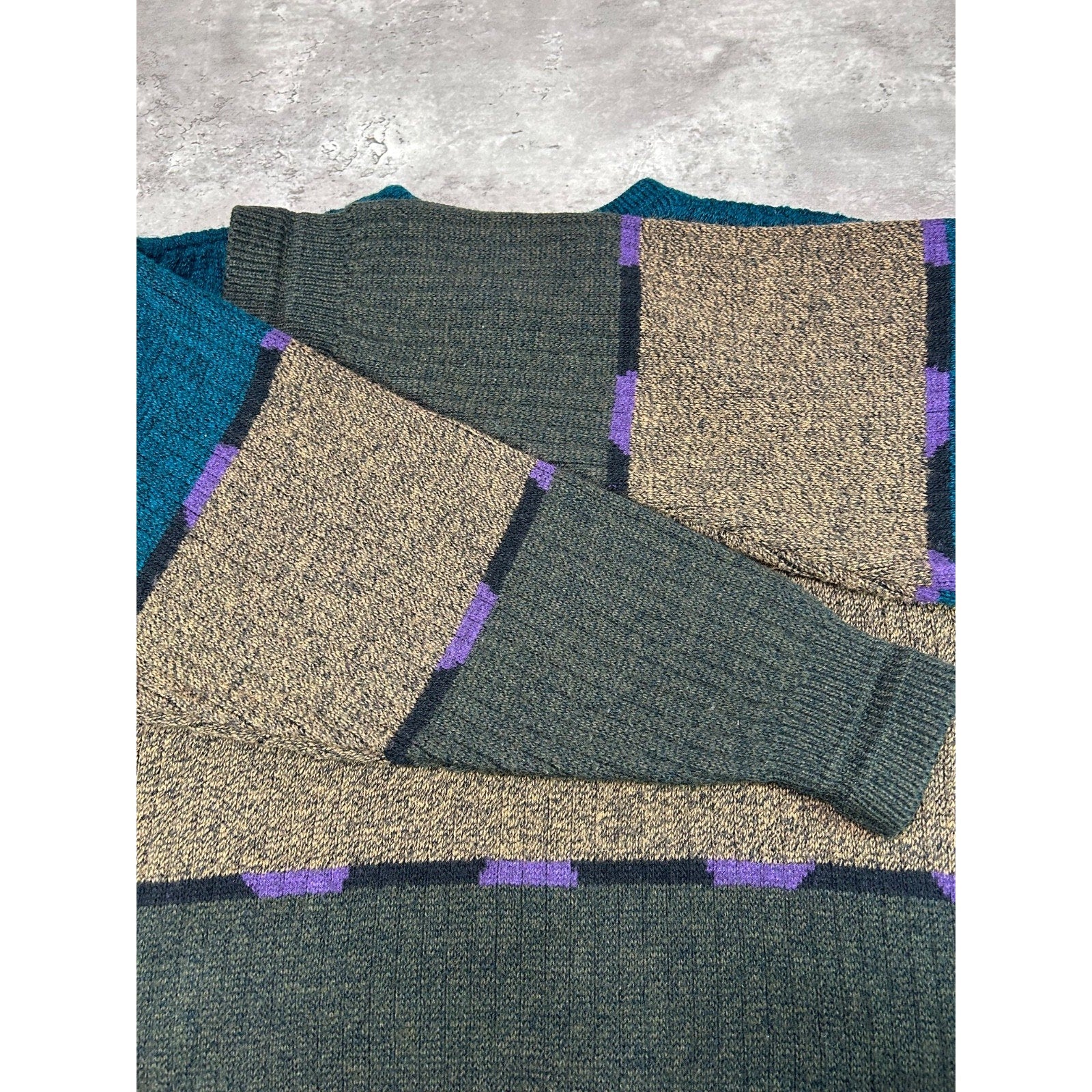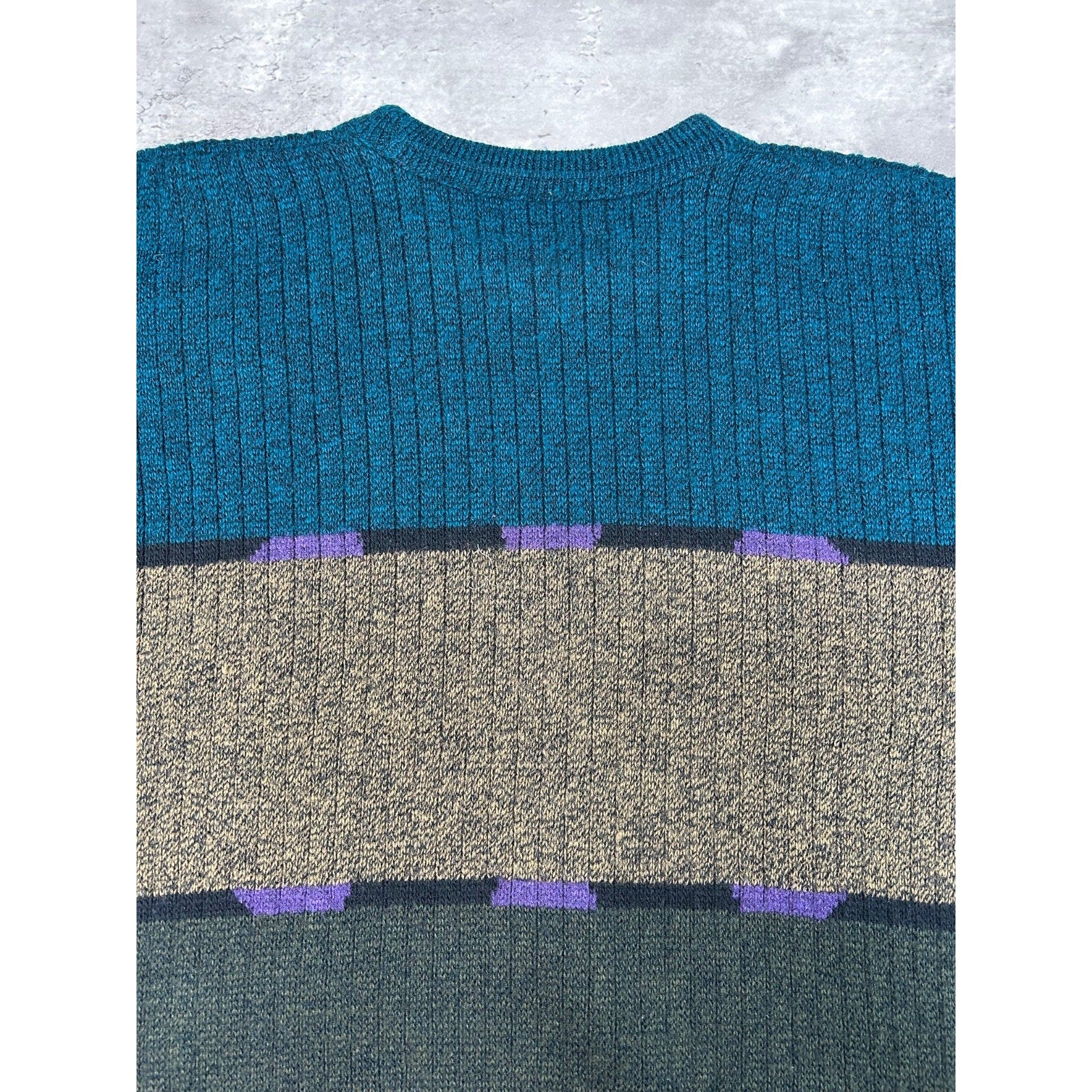 Vintage 90s Jantzen Abstract Print Striped Pullover Knit Sweater Size Medium