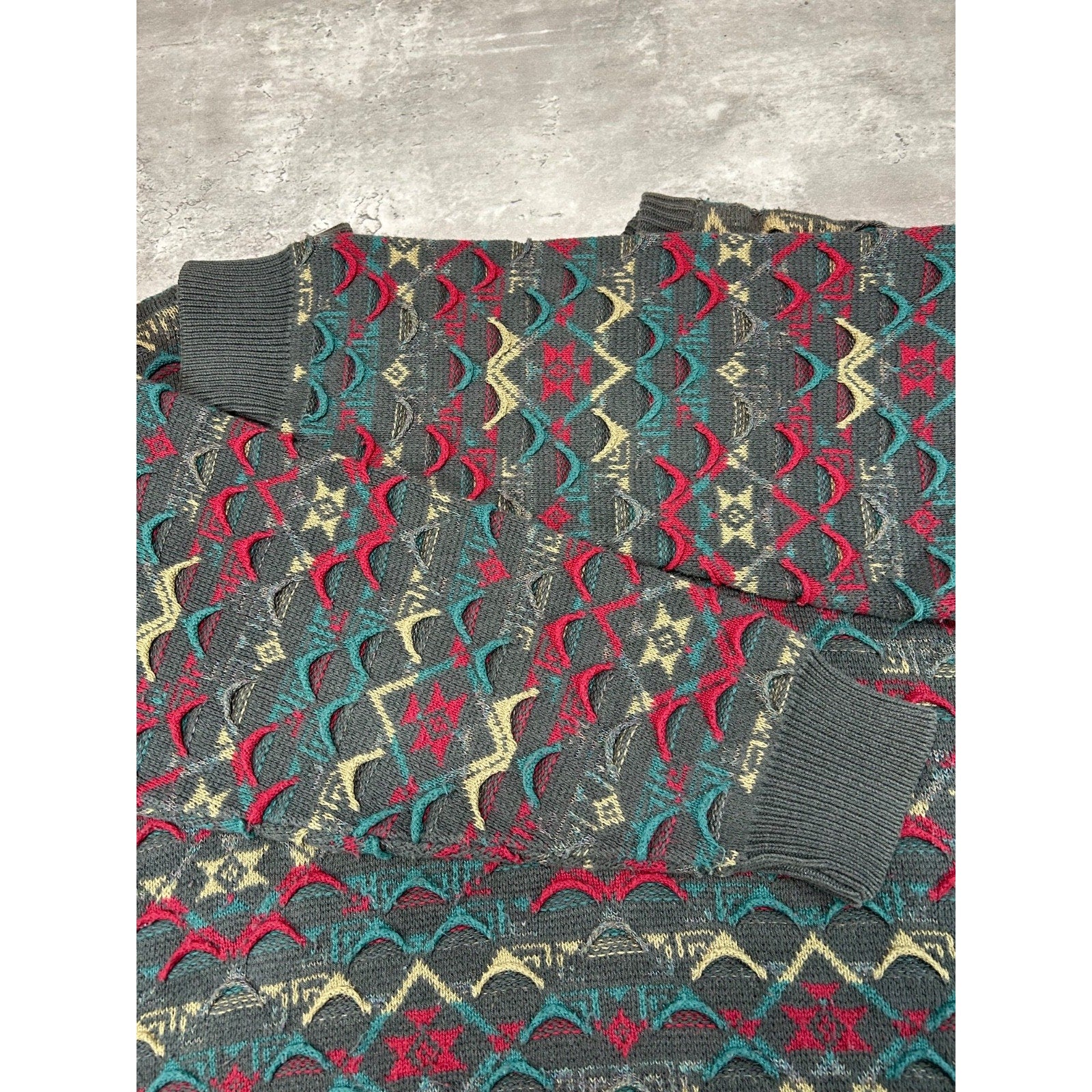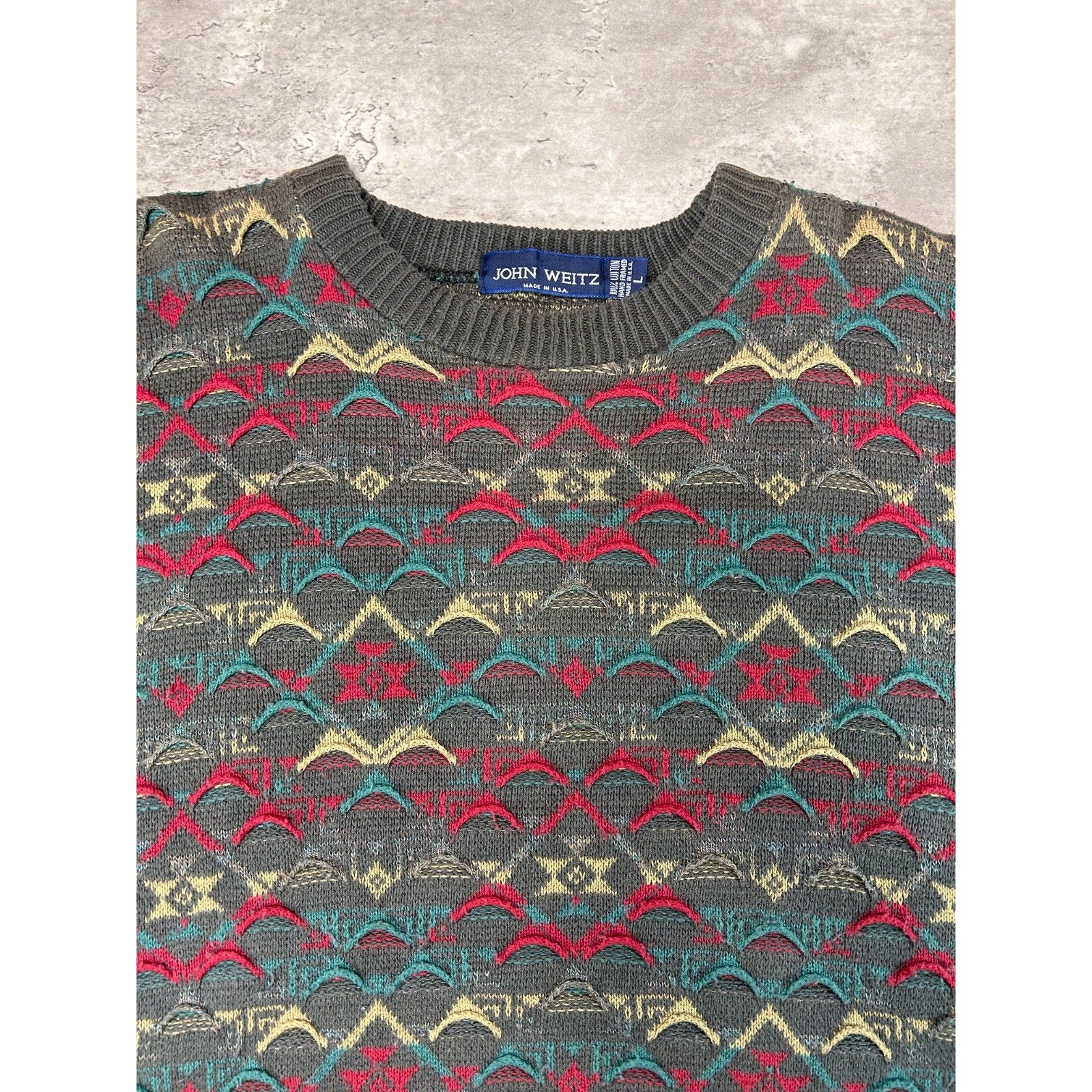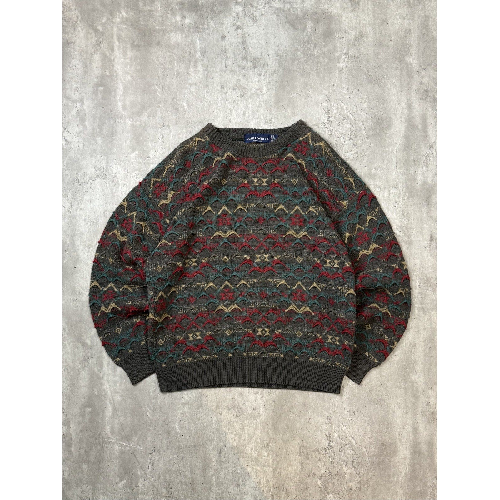 Vintage 90s John Weitz Abstract 3D Knit Pullover Sweater Size Large