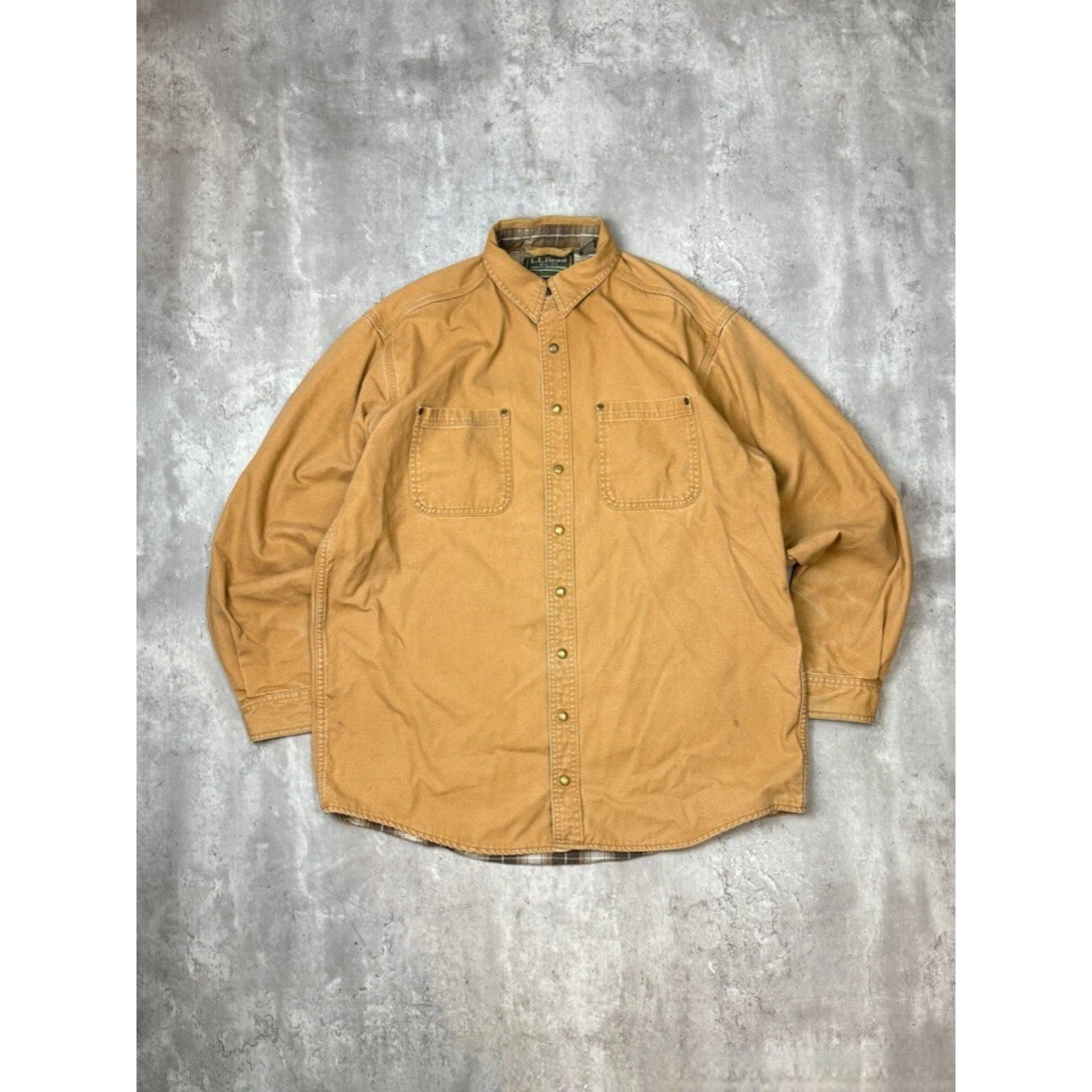 Vintage 90s L.L. Bean Plaid Lined Canvas Long Sleeve Button Up Shirt Size LT