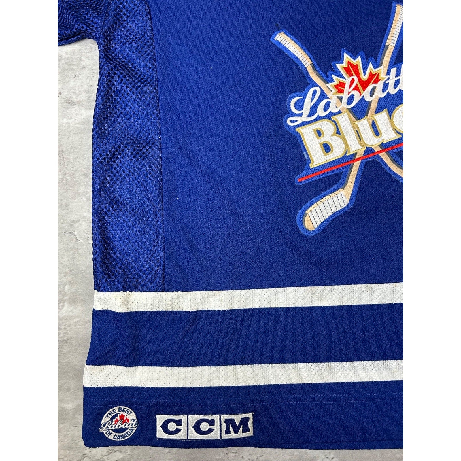 Vintage 90s Labbatt Blue Stitched CCM Hockey Jersey Size XL Blue