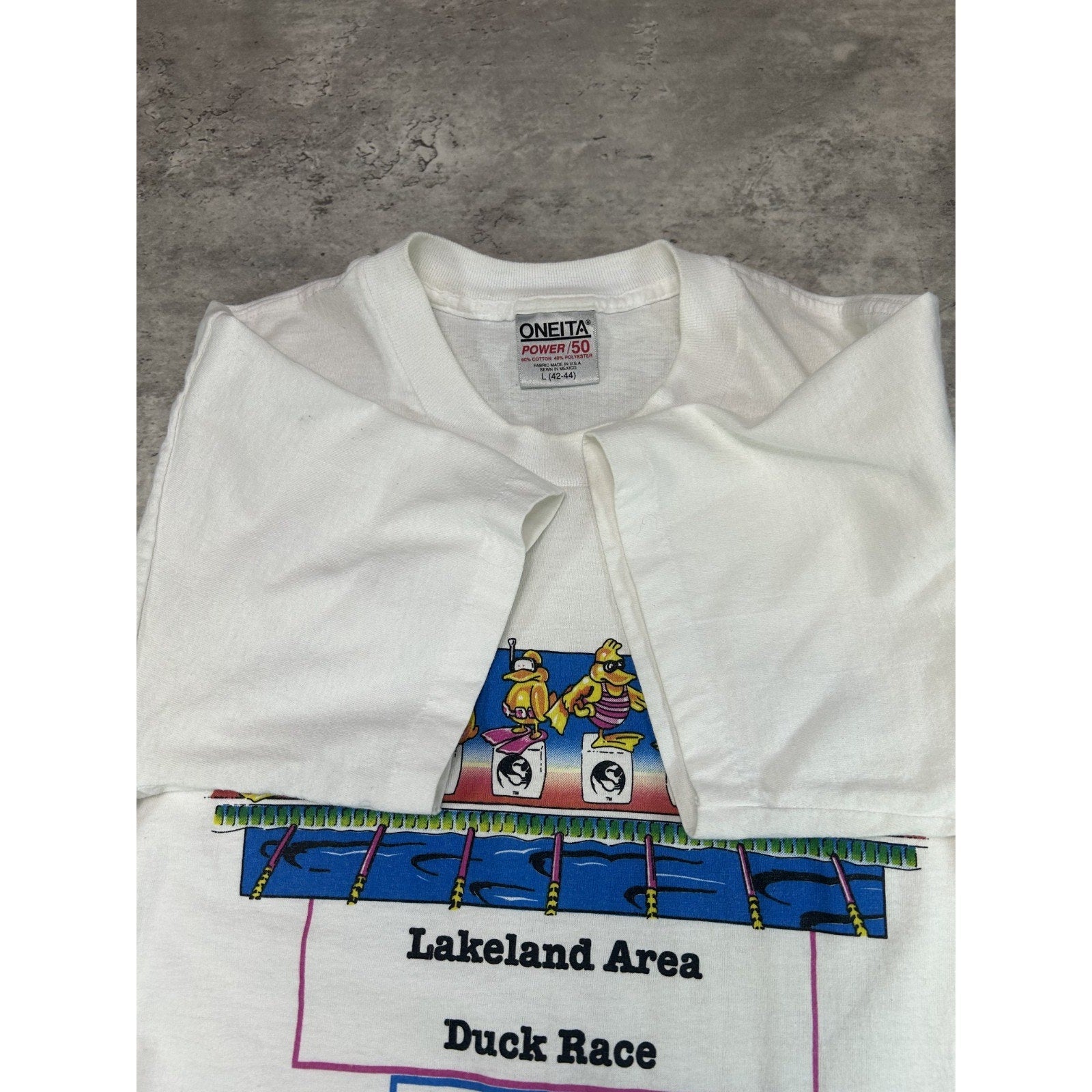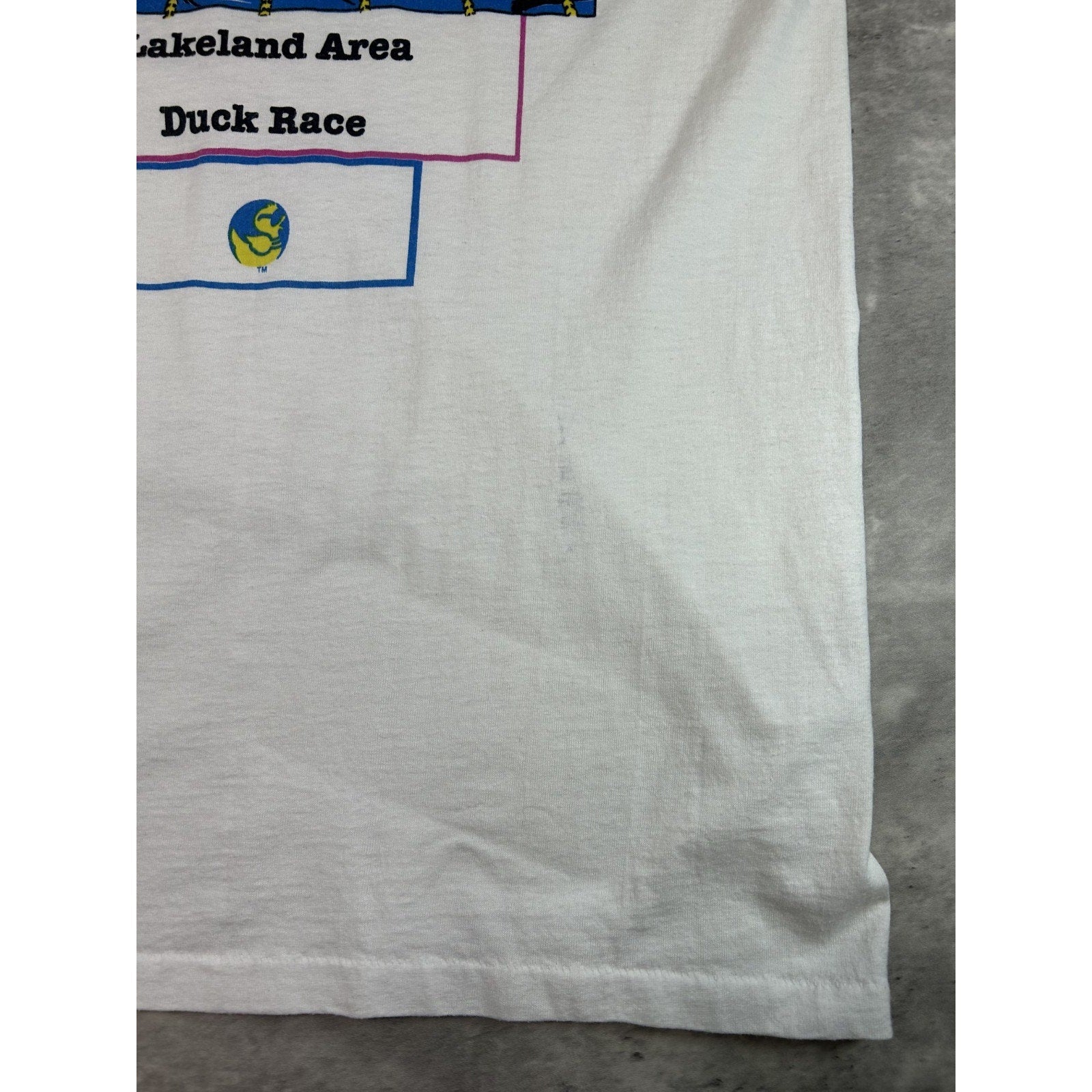 Vintage 90s Lakeland Duck Race Cartoon Duck Graphic T-Shirt Size Large
