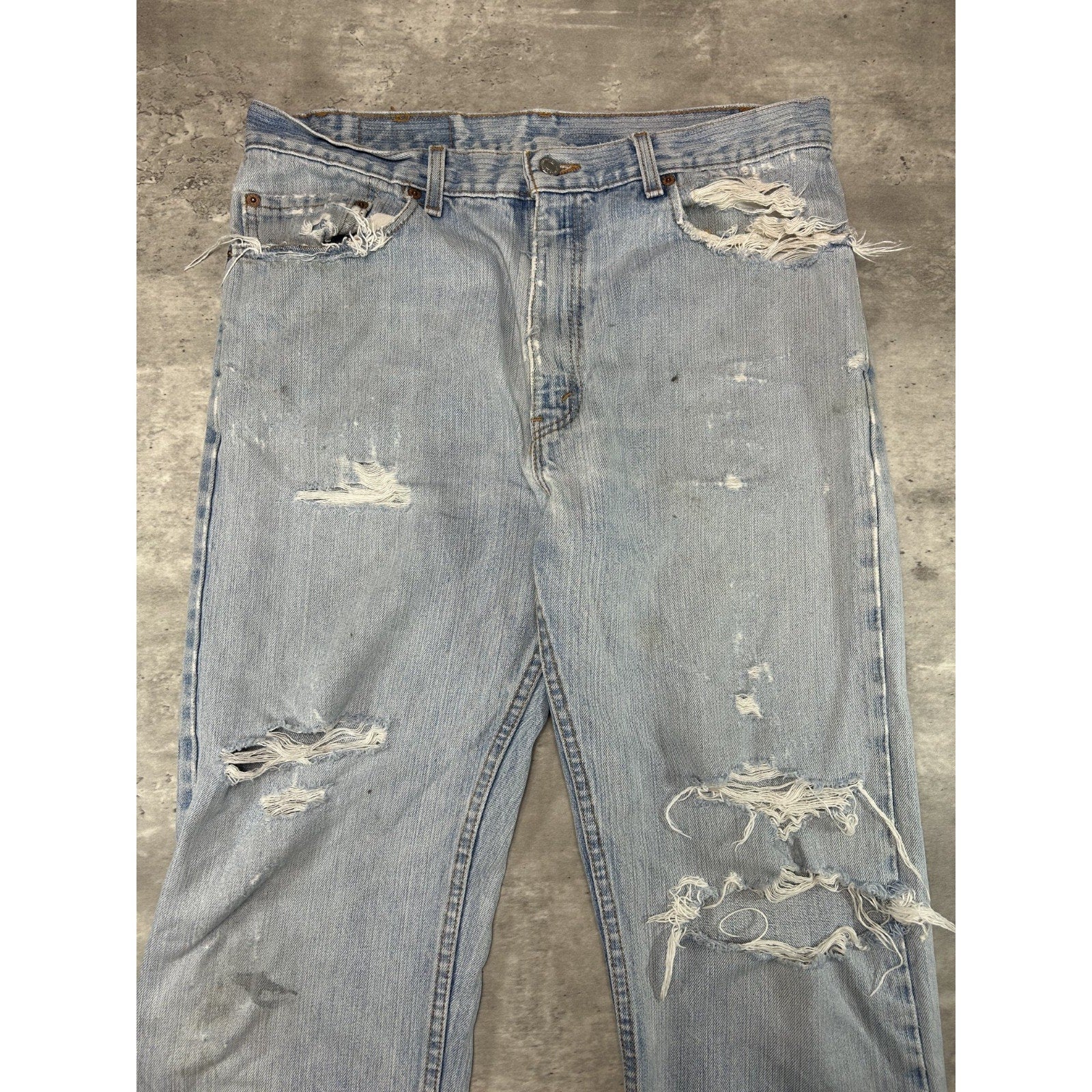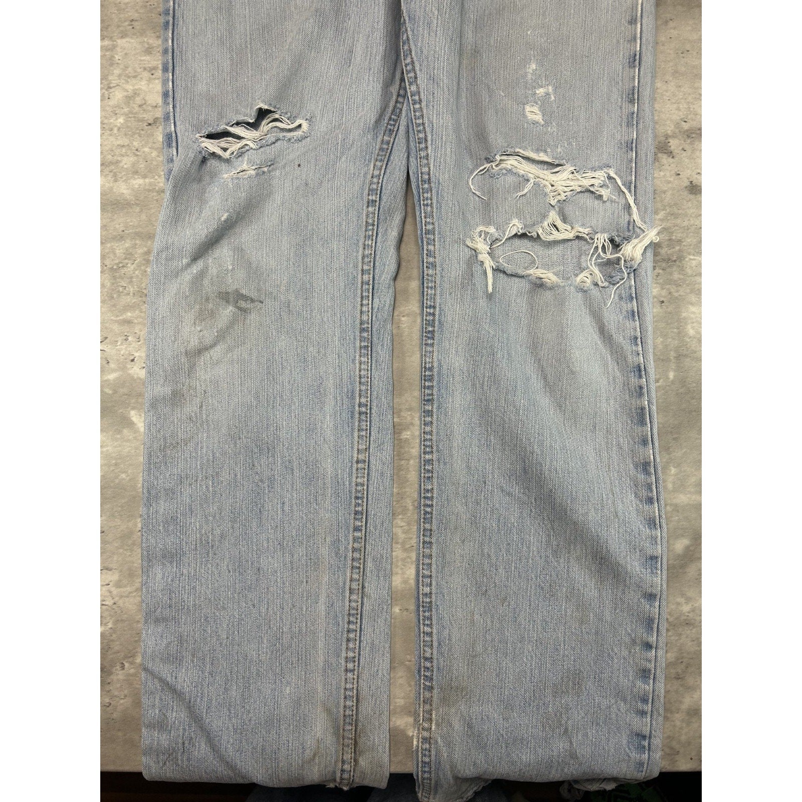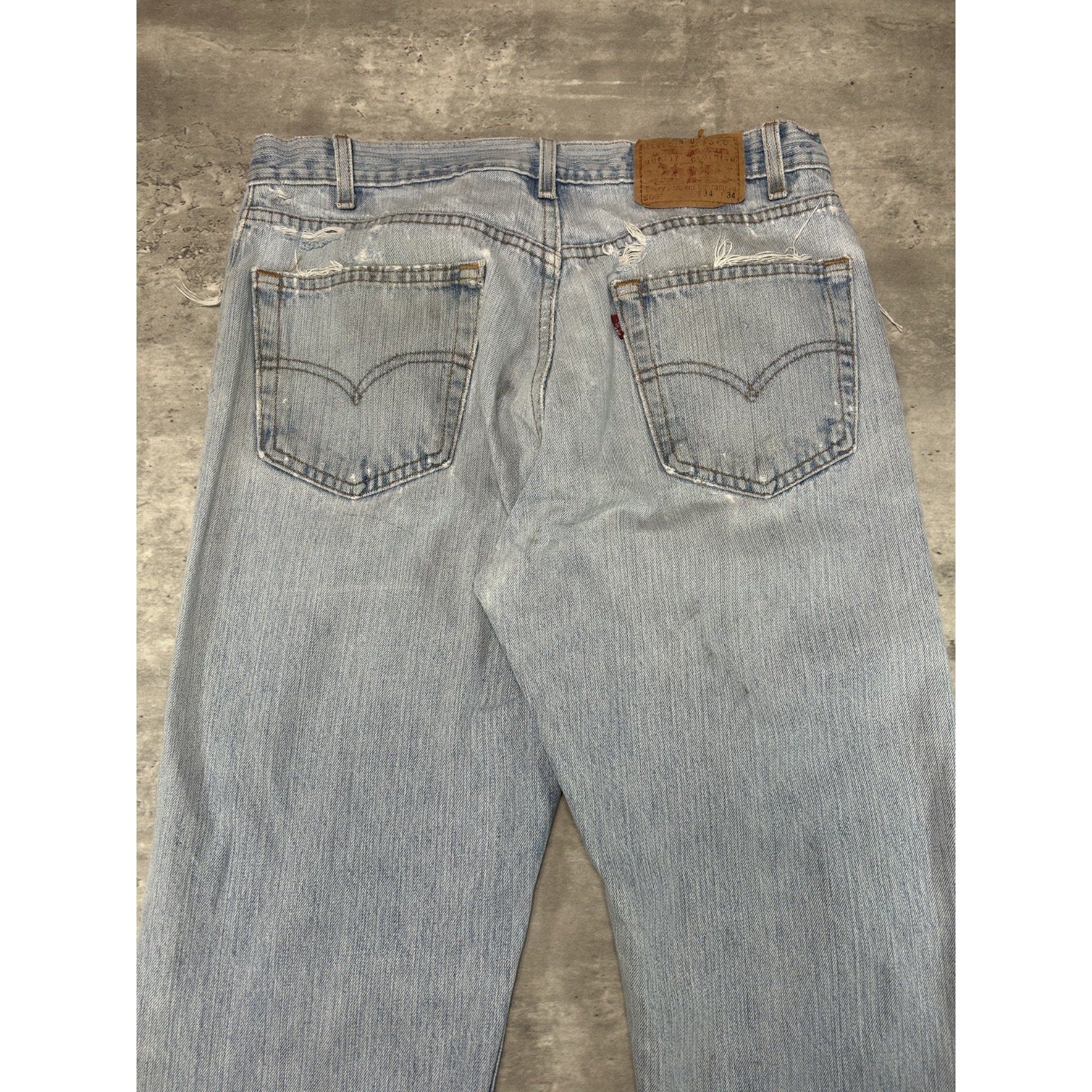 Vintage 90s Levis 505 Red Tab Light Wash Distressed Denim Pants Size 34