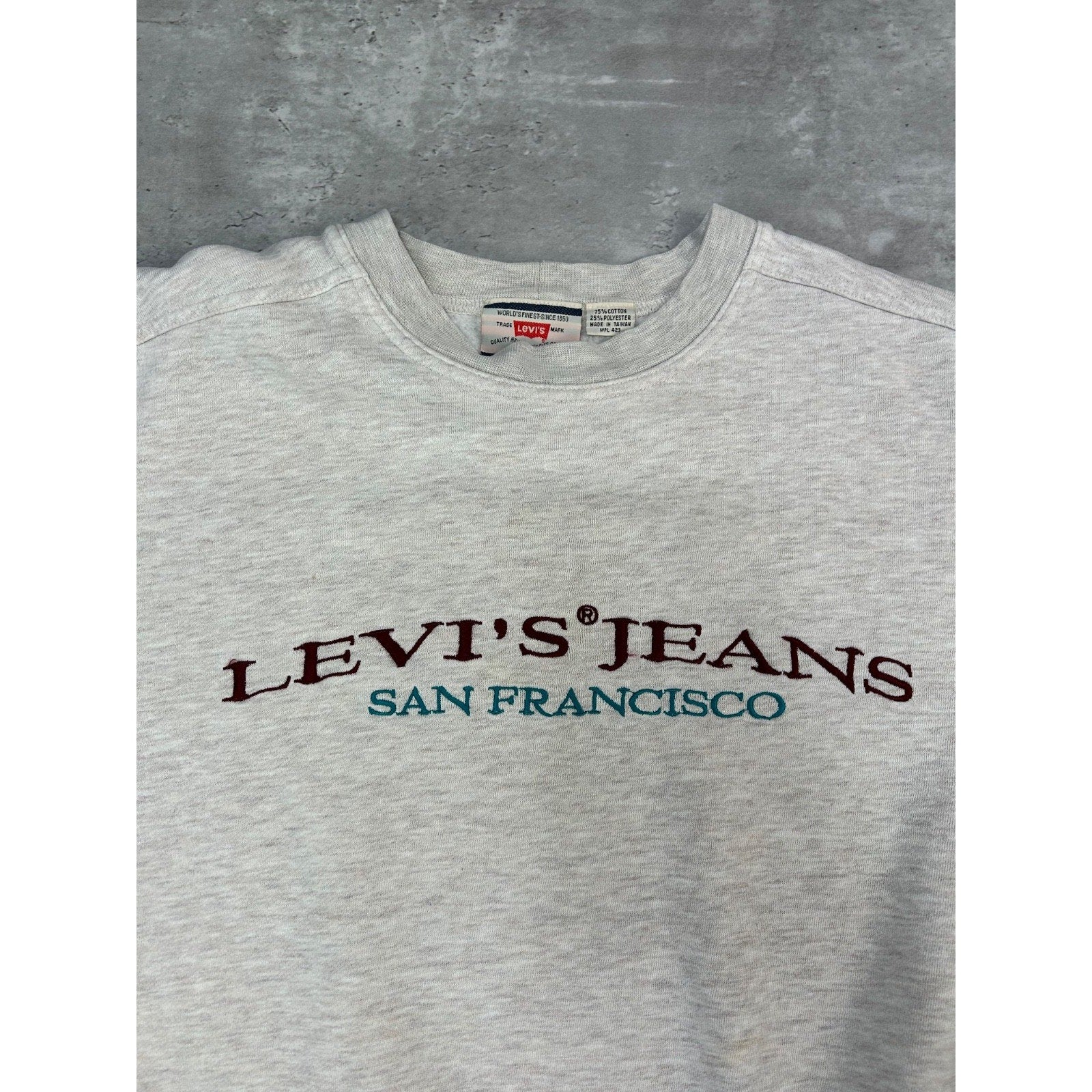Vintage 90s Levis Jeans Embroidered Spellout Crewneck Sweatshirt Size Medium