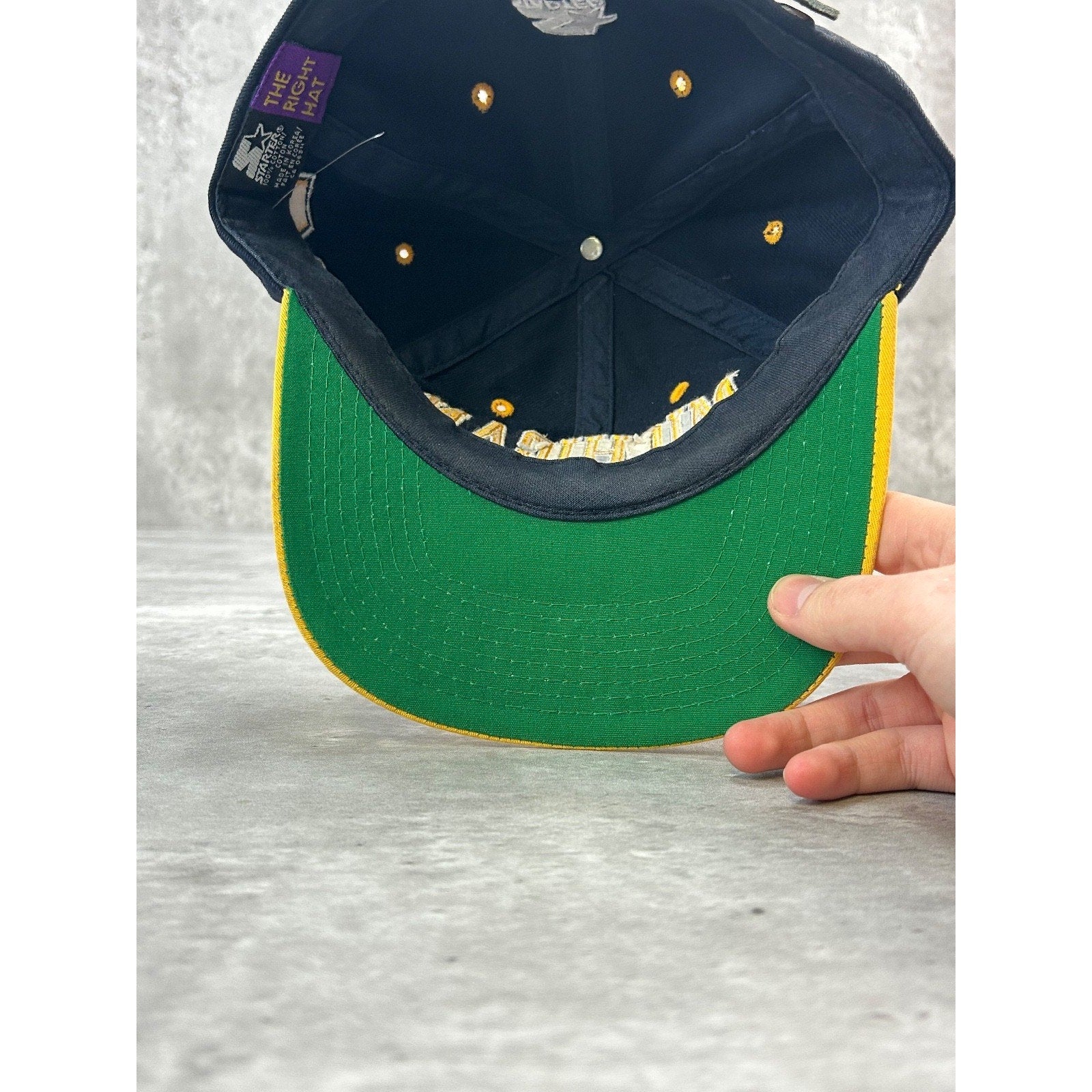 Vintage 90s Michigan Wolverines NCAA Starter Arc Spellout YOUTH Strapback Hat
