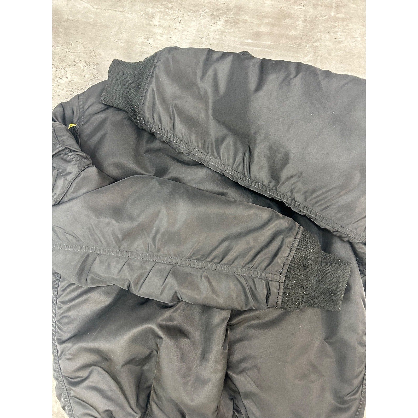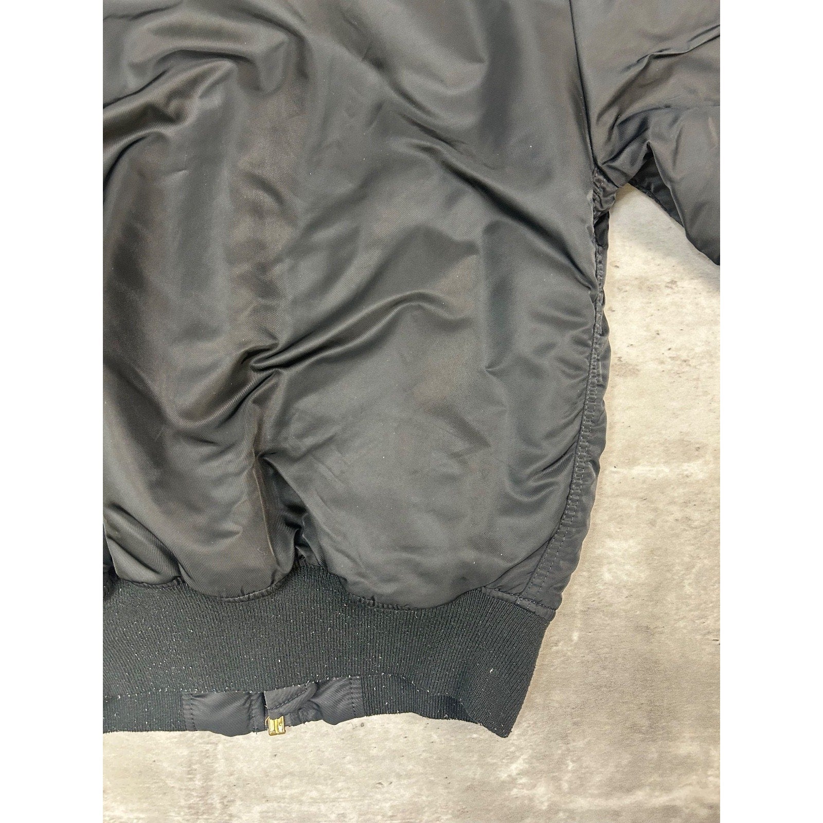 Black side: General wear due to age. Pilling on collar, cuffs, and waistband.