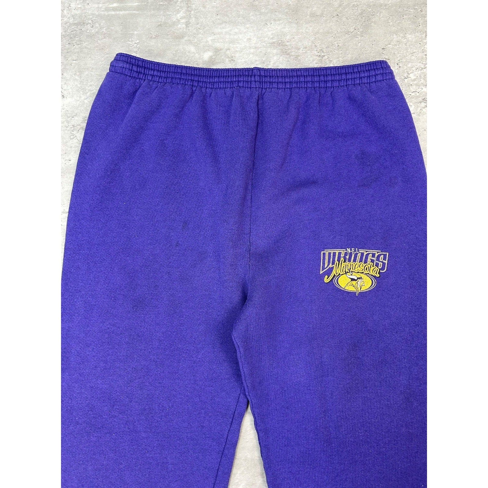 Vintage 90s Minnesota Vikings NFL Graphic Spellout Sweat Pants Size Large Purple