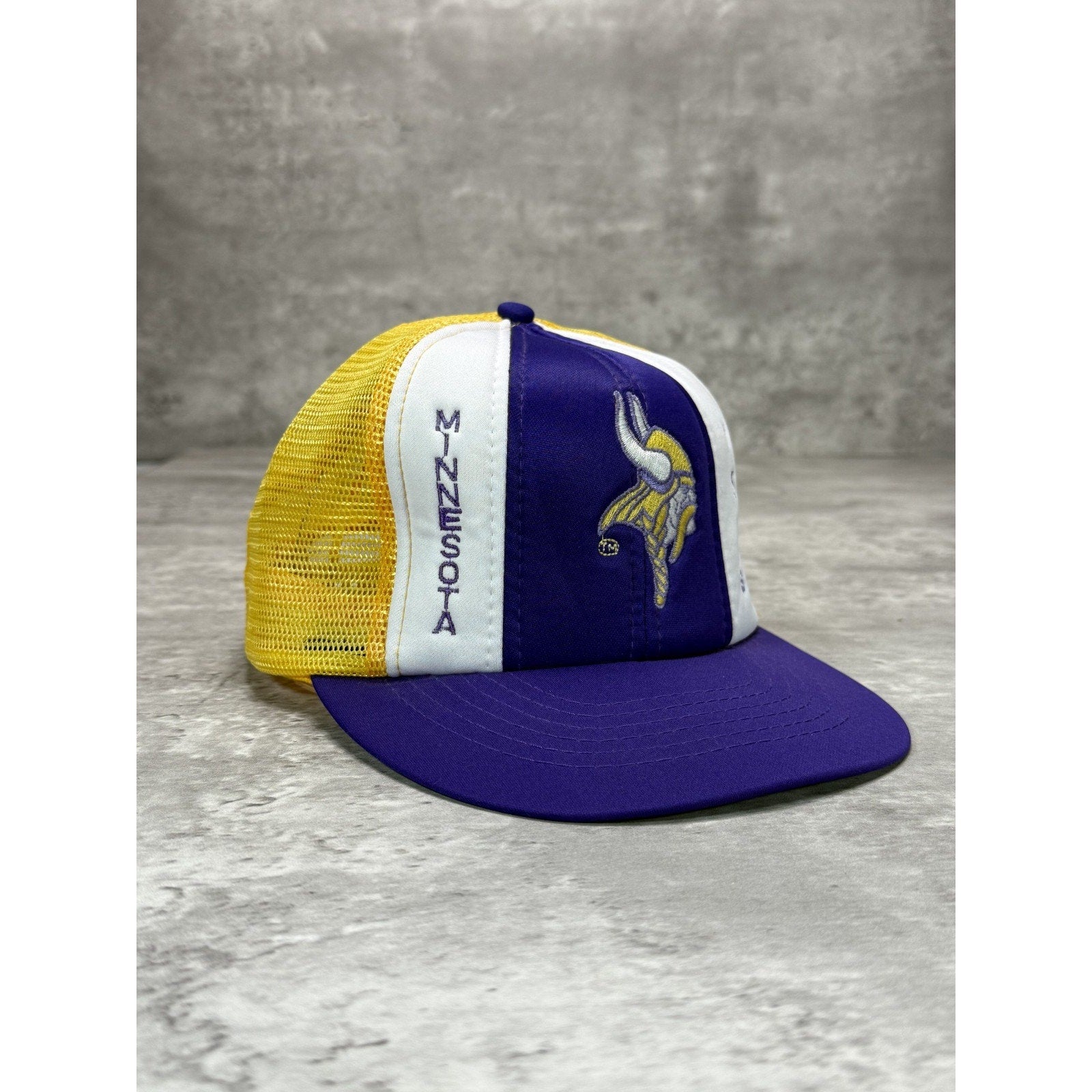 Vintage 90s Minnesota Vikings NFL Lucky Stripe Trucker Snapback Trucker Hat OSFA