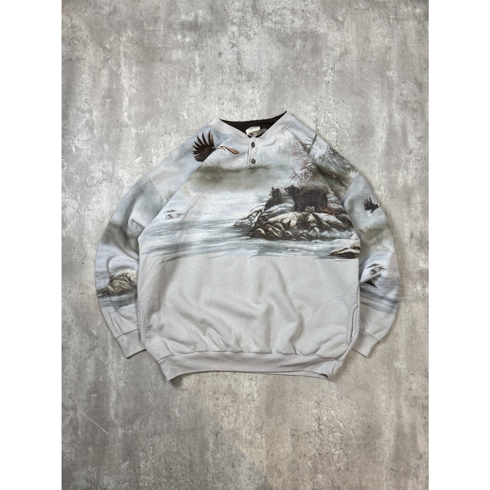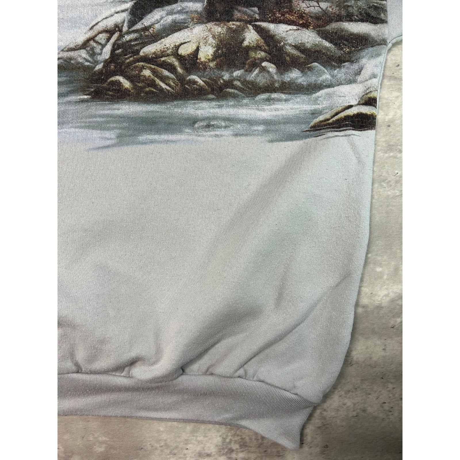 Vintage 90s Nature Animal Graphic All Over Print Sweatshirt Size 2XL Gray