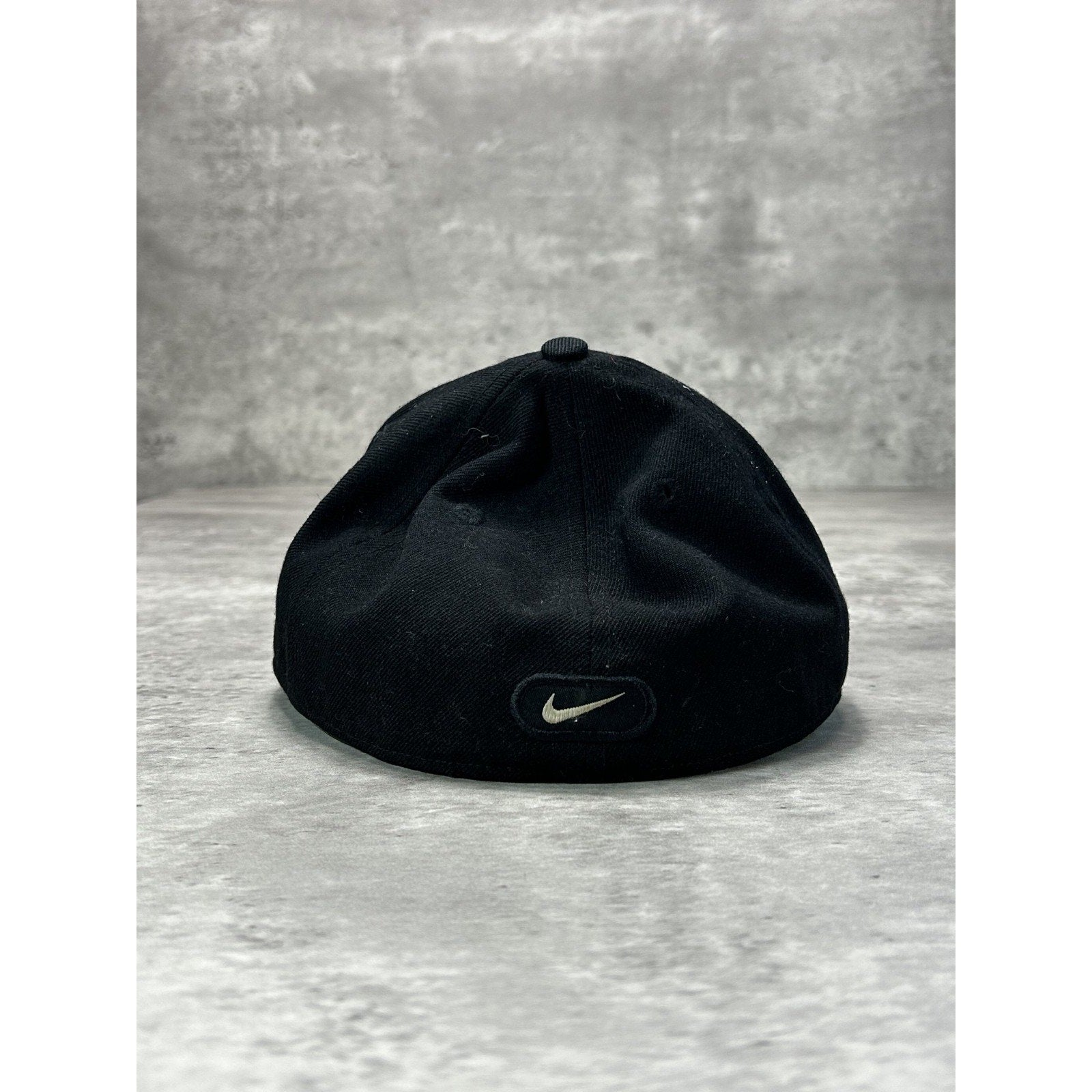 Vintage 90s Nike Embroidered Swoosh Fitted Hat Size 7 1/4 Black