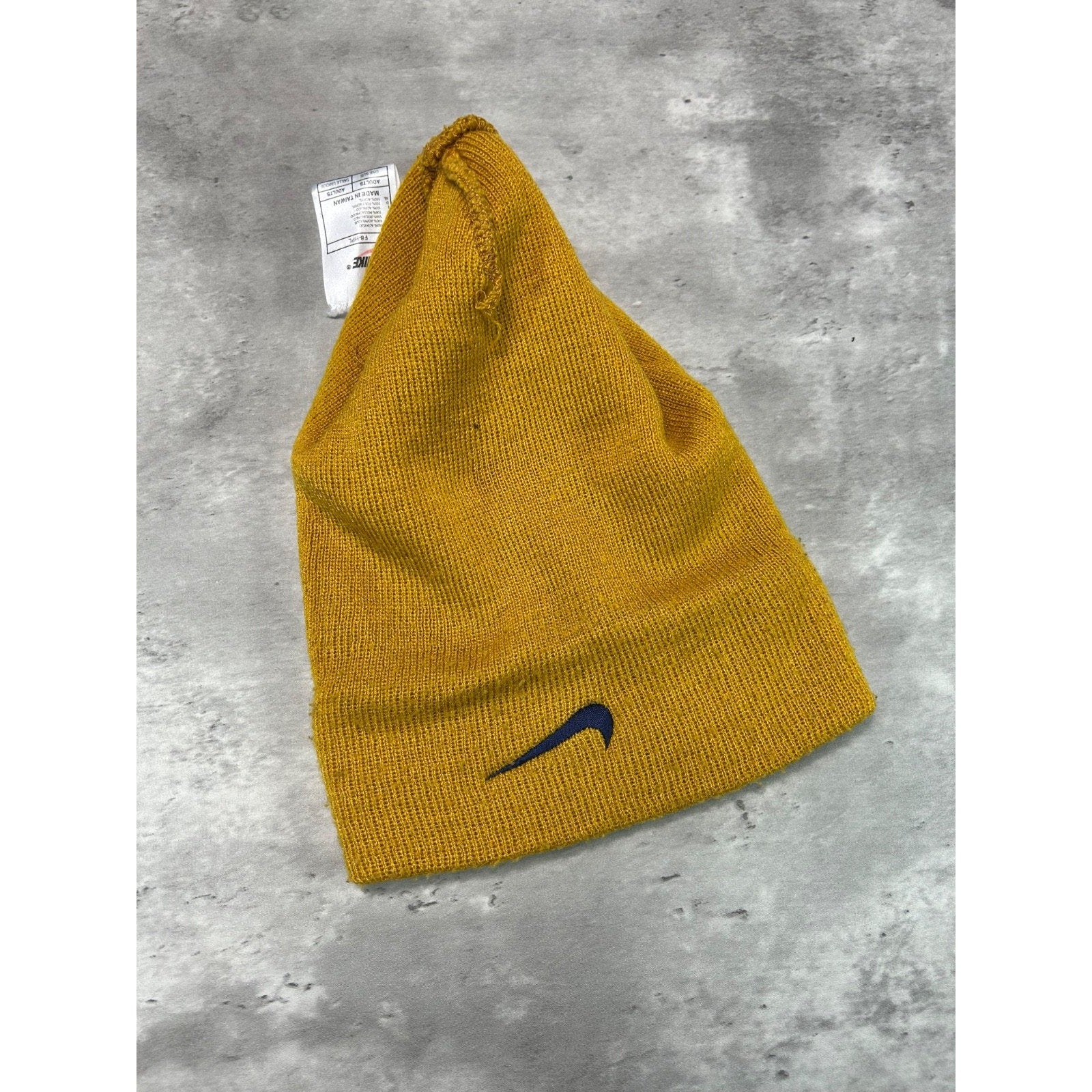 Vintage 90s Nike Embroidered Swoosh Two Tone Beanie Hat Yellow