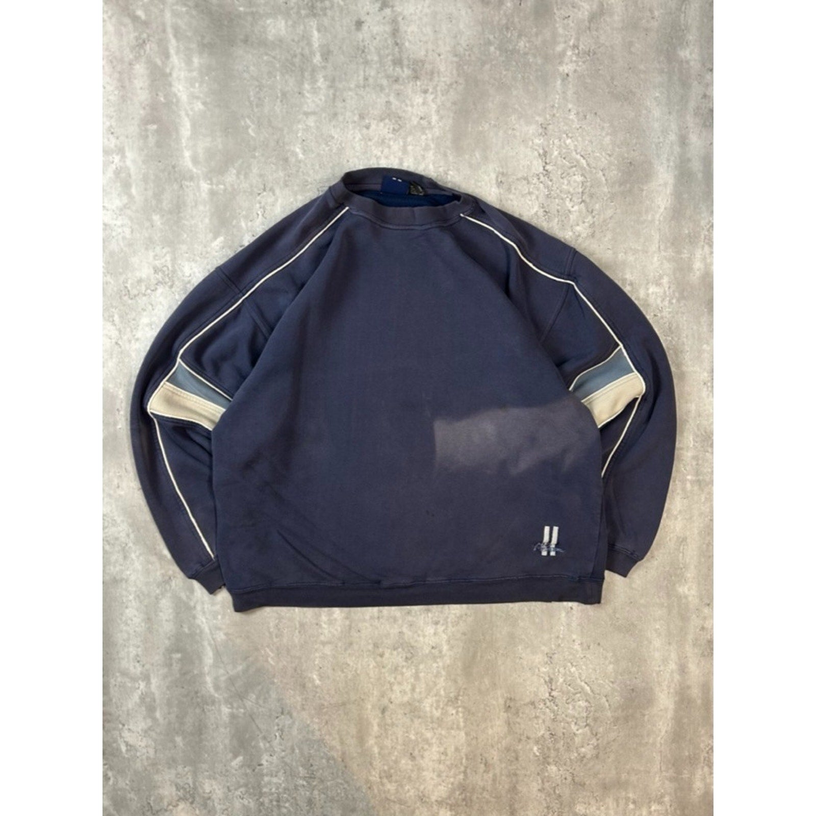 Vintage 90s No Fear Embroidered Spellout Striped Crewneck Sweatshirt Size Medium
