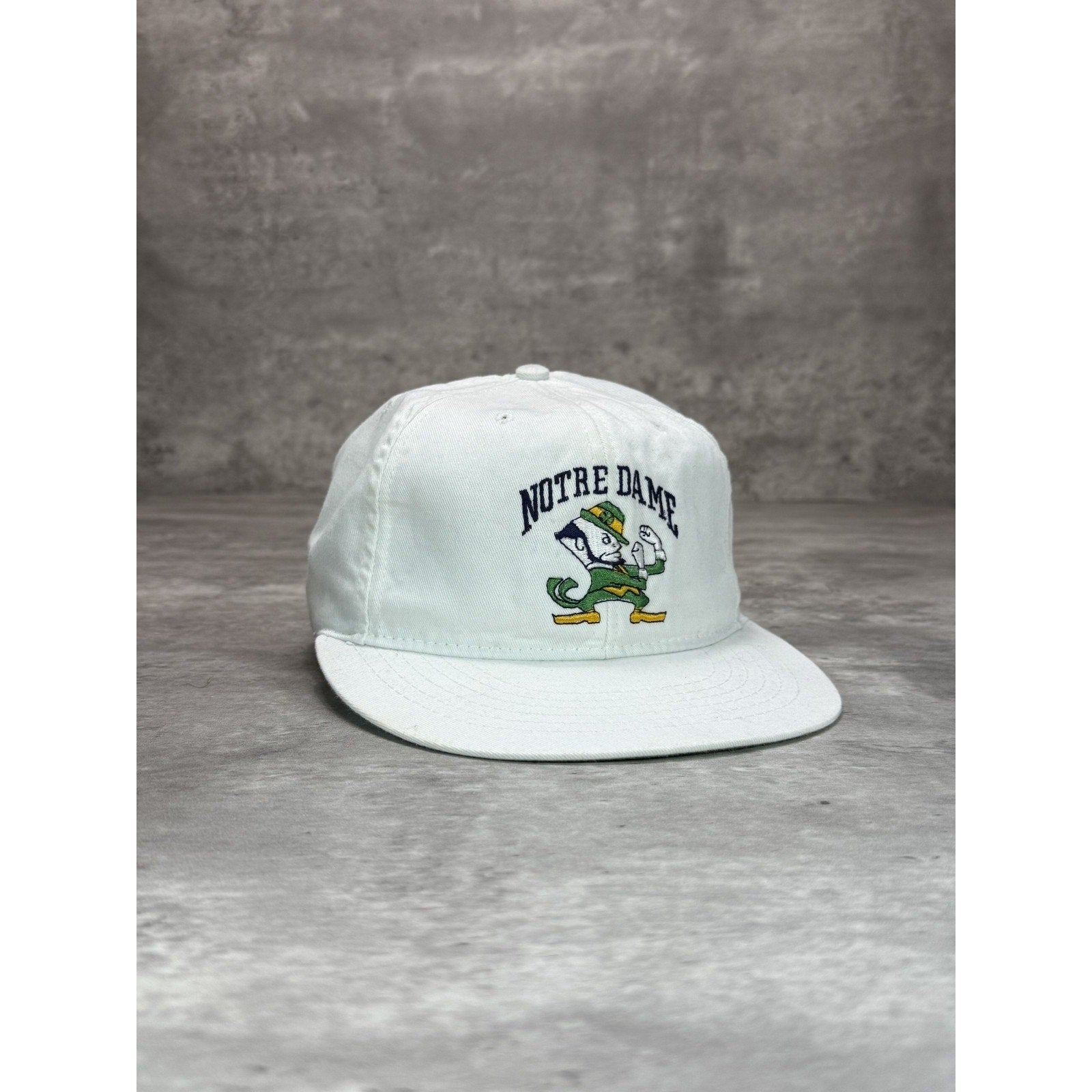 Vintage 90s Notre Dame Fighting Irish NCAA Embroidered Snapback Hat OSFA White