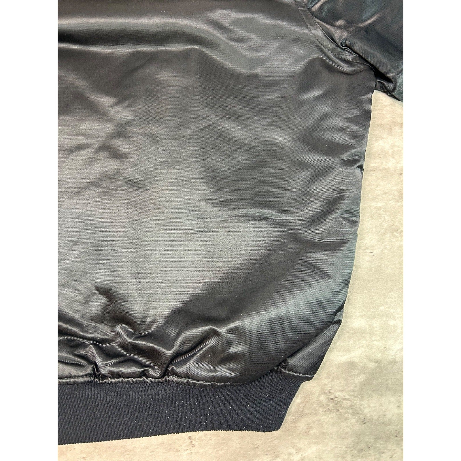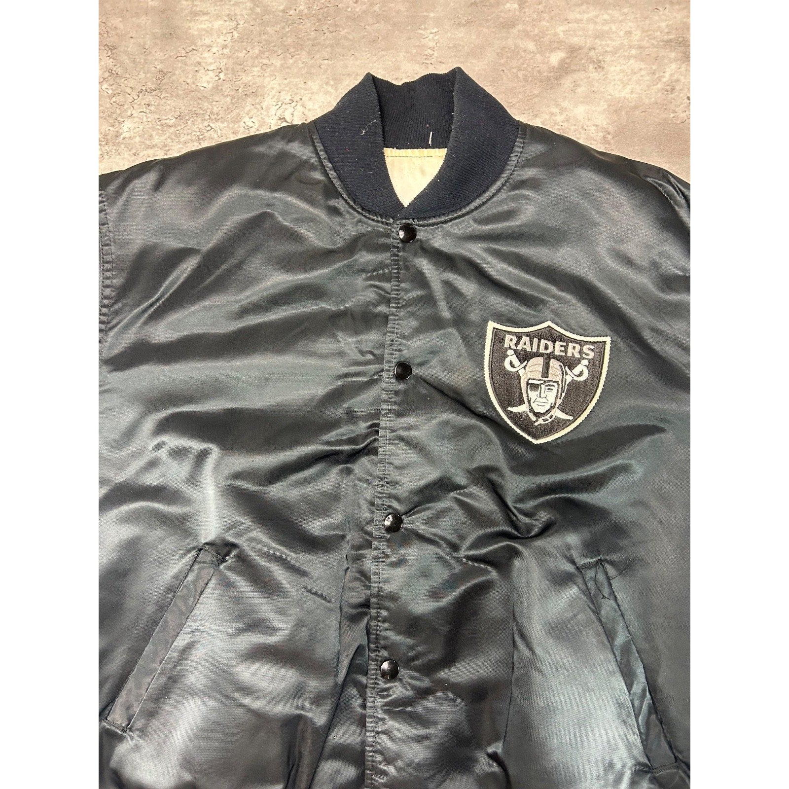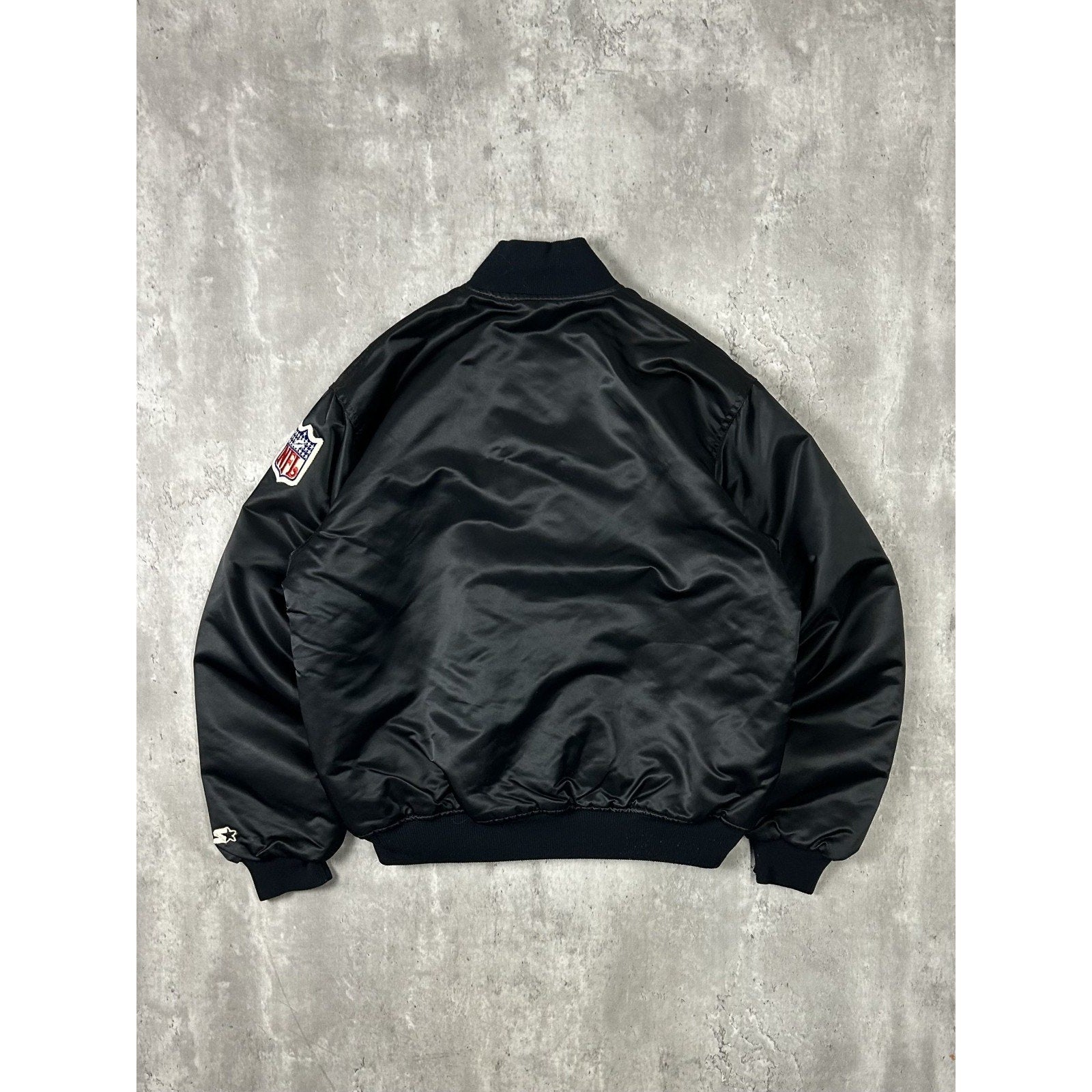 Vintage 90s Oakland Raiders NFL Starter Satin Bomber Jacket Size Large Black