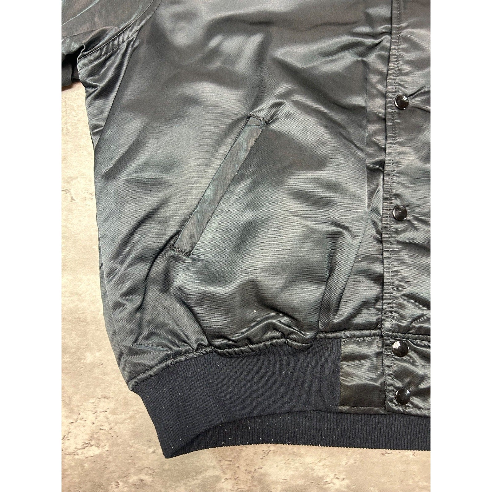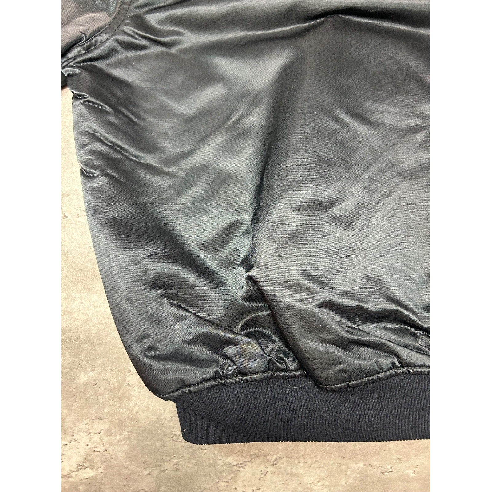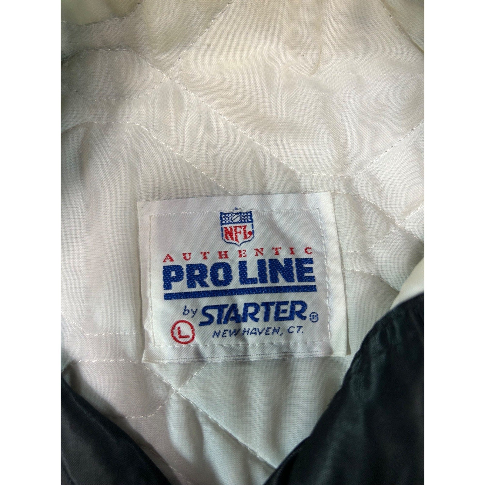 Vintage 90s Oakland Raiders NFL Starter Satin Bomber Jacket Size Large Black