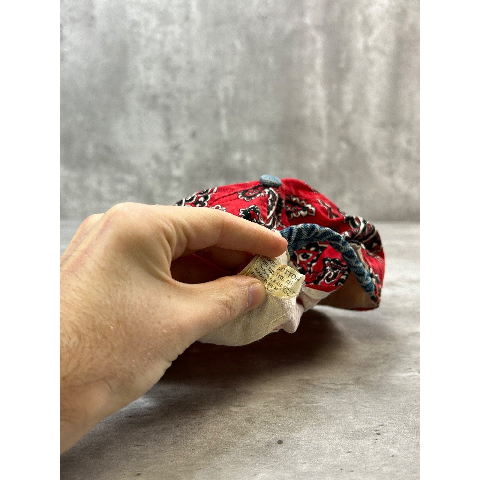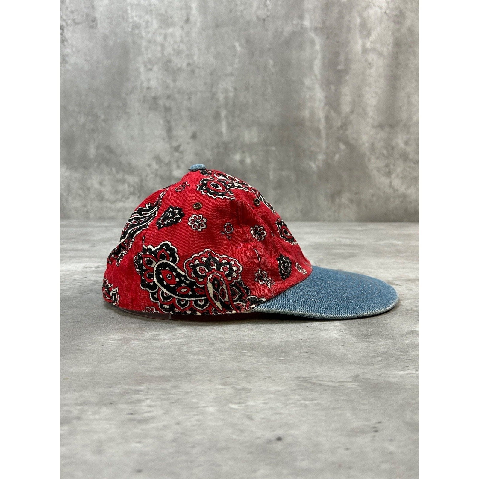Vintage 90s Paisley Print Denim Brim Flexfit Hat OSFA