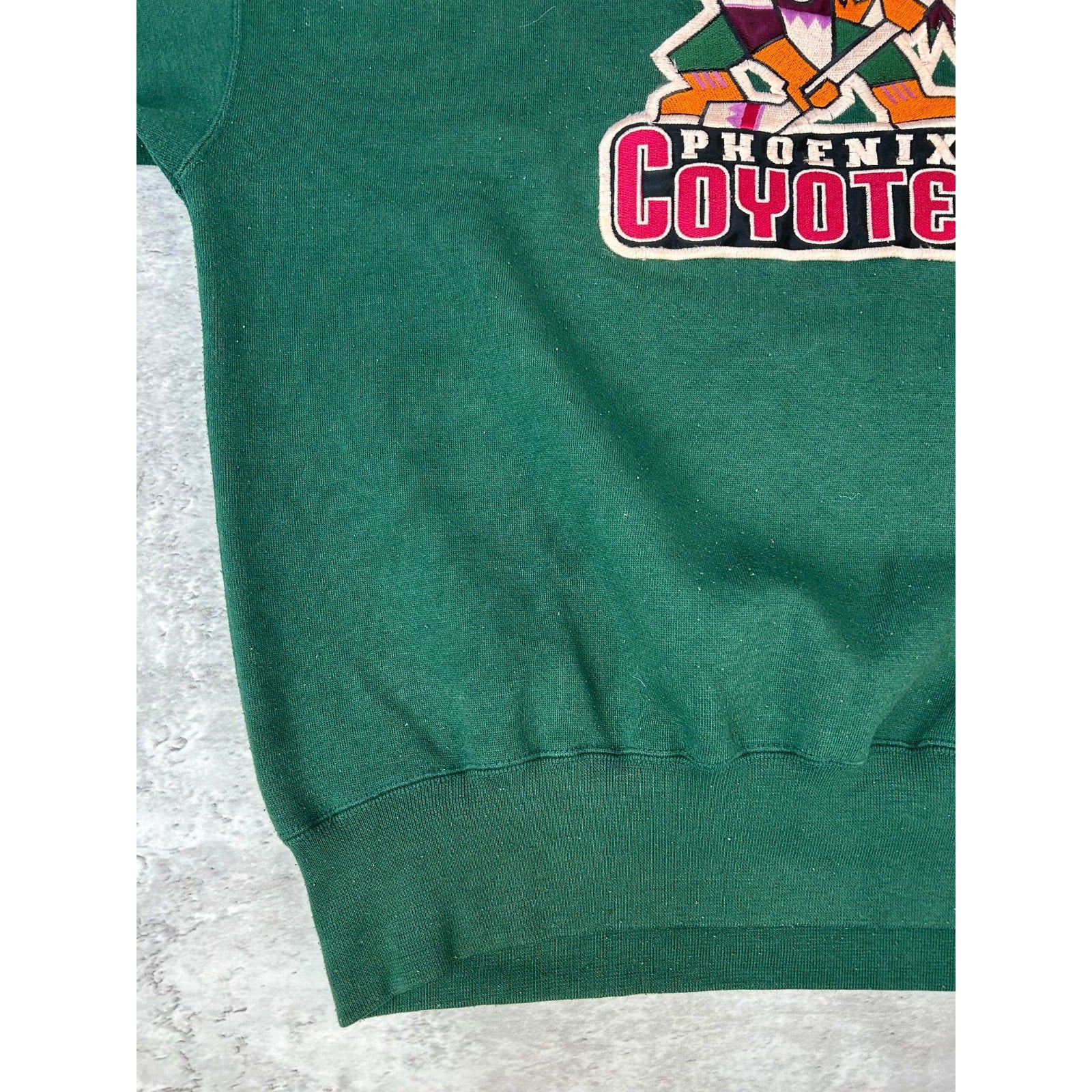 Vintage 90s Phoenix Coyotes NHL Embroidered Spellout Hockey Sweatshirt Sz Large