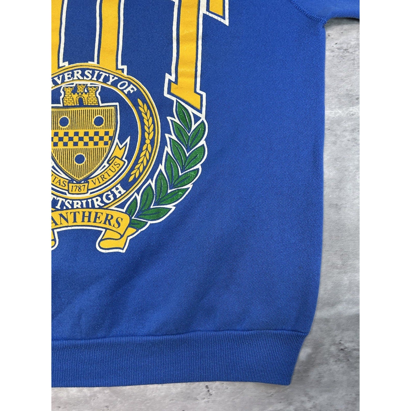 Vintage 90s Pitt Panthers NCAA Collegiate Crest Graphic Sweatshirt Size Large