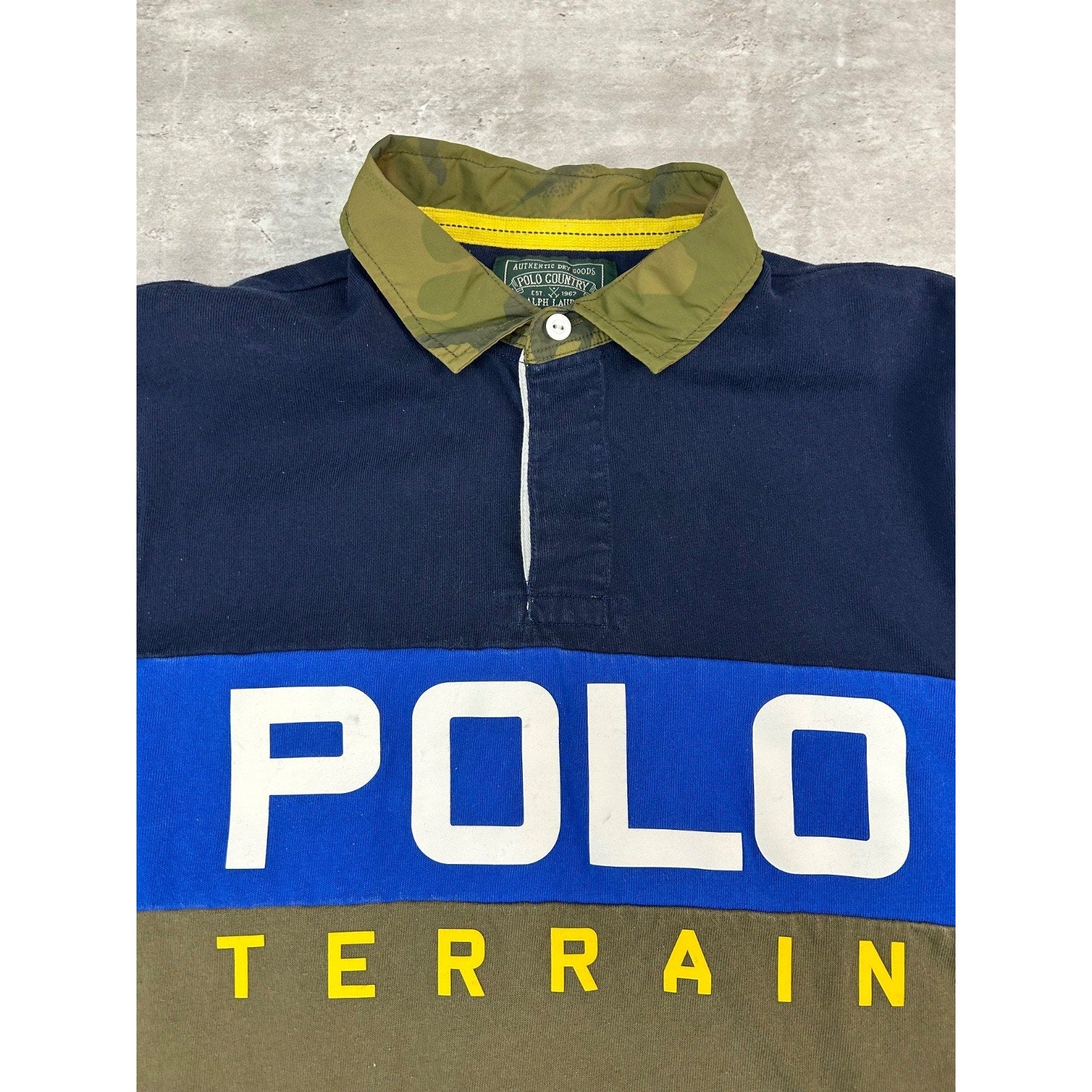 Vintage 90s Polo Country Polo Terrain Spellout 1/4 Button Rugby Shirt Size Large