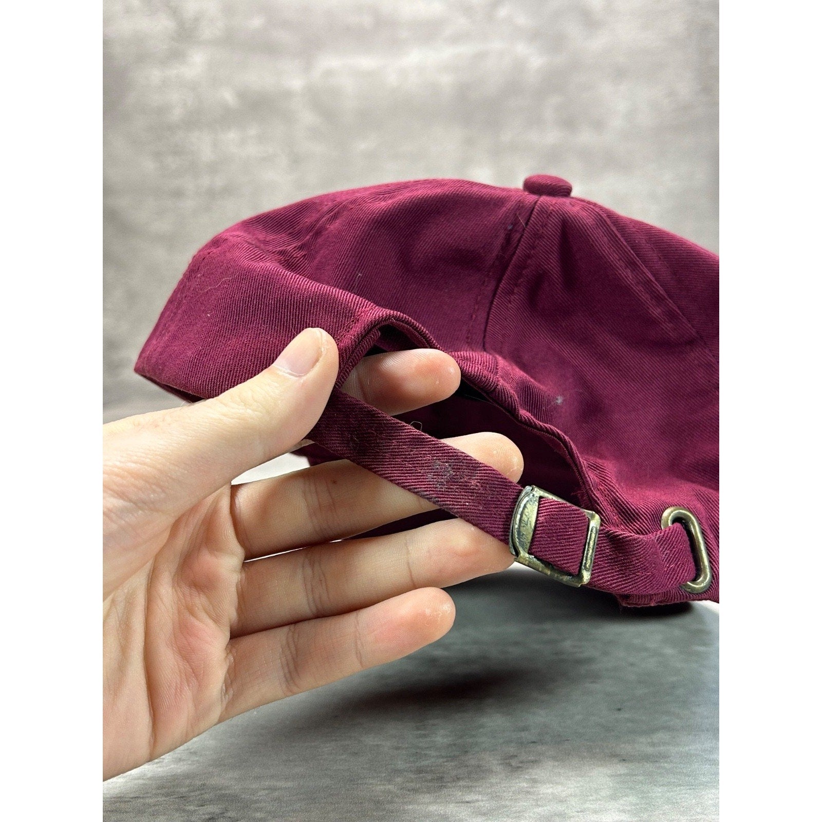 General wear due to age. Marks found around. Creasing on dome. Minor wear on sweatband. HAT FITS SMALL.