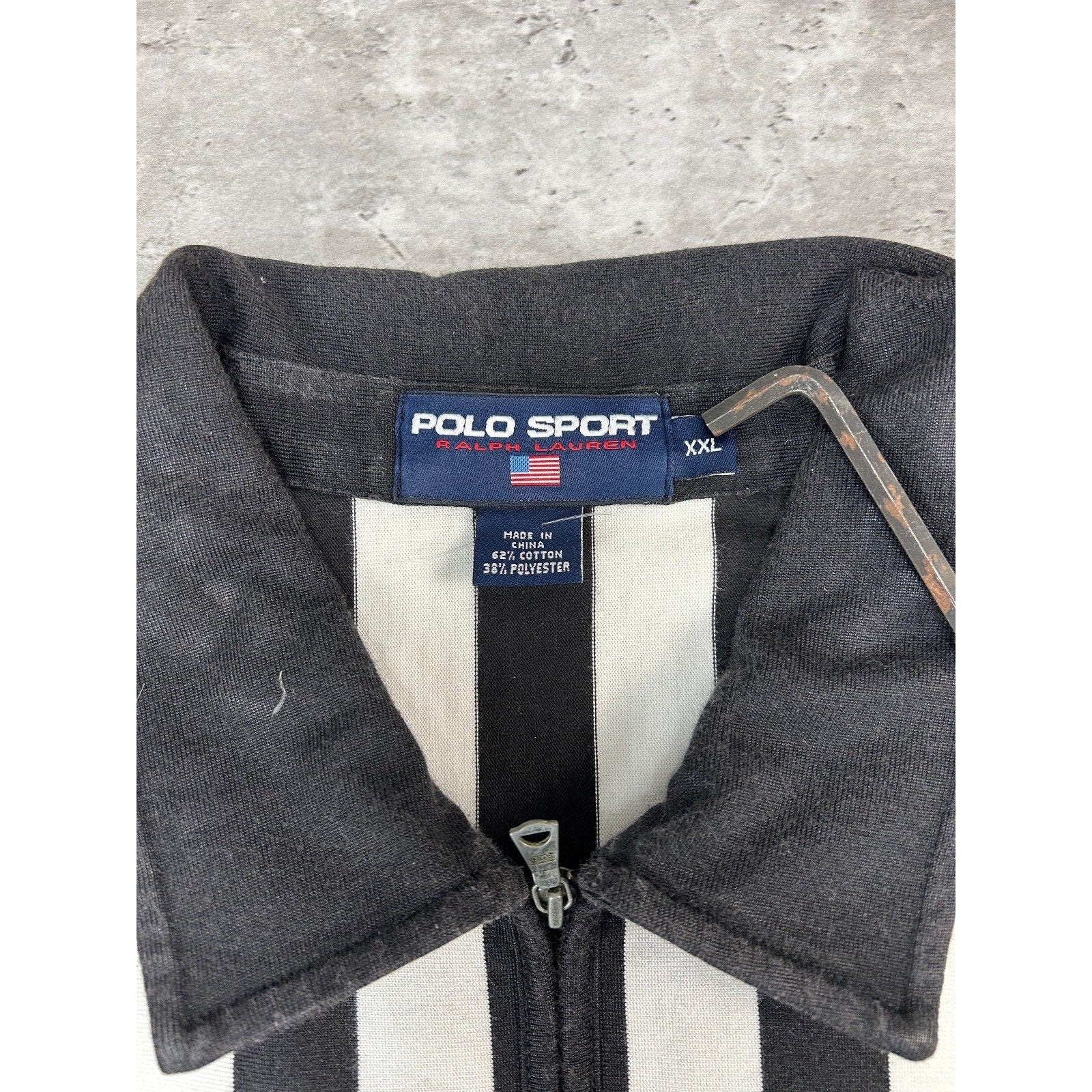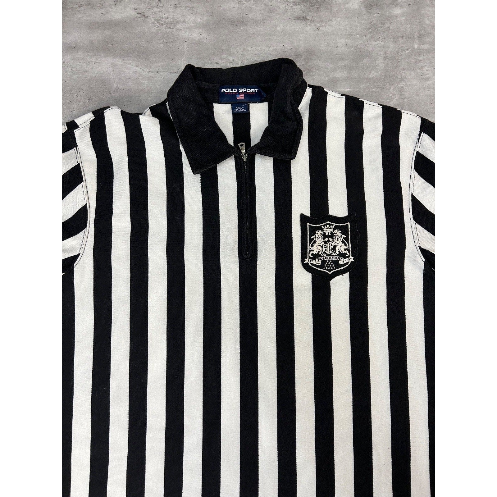 Vintage 90s Polo Sport Embroidered Crest Striped 1/4 Zip Button Up Shirt Sz 2XL