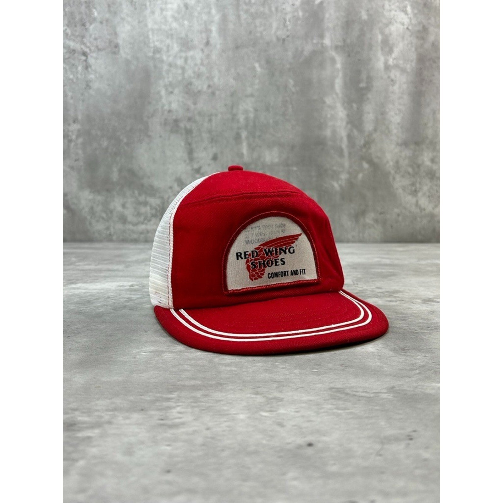 Vintage 90s Red Wings Shoes Embroidered Patch Trucker Snapback Hat OSFA