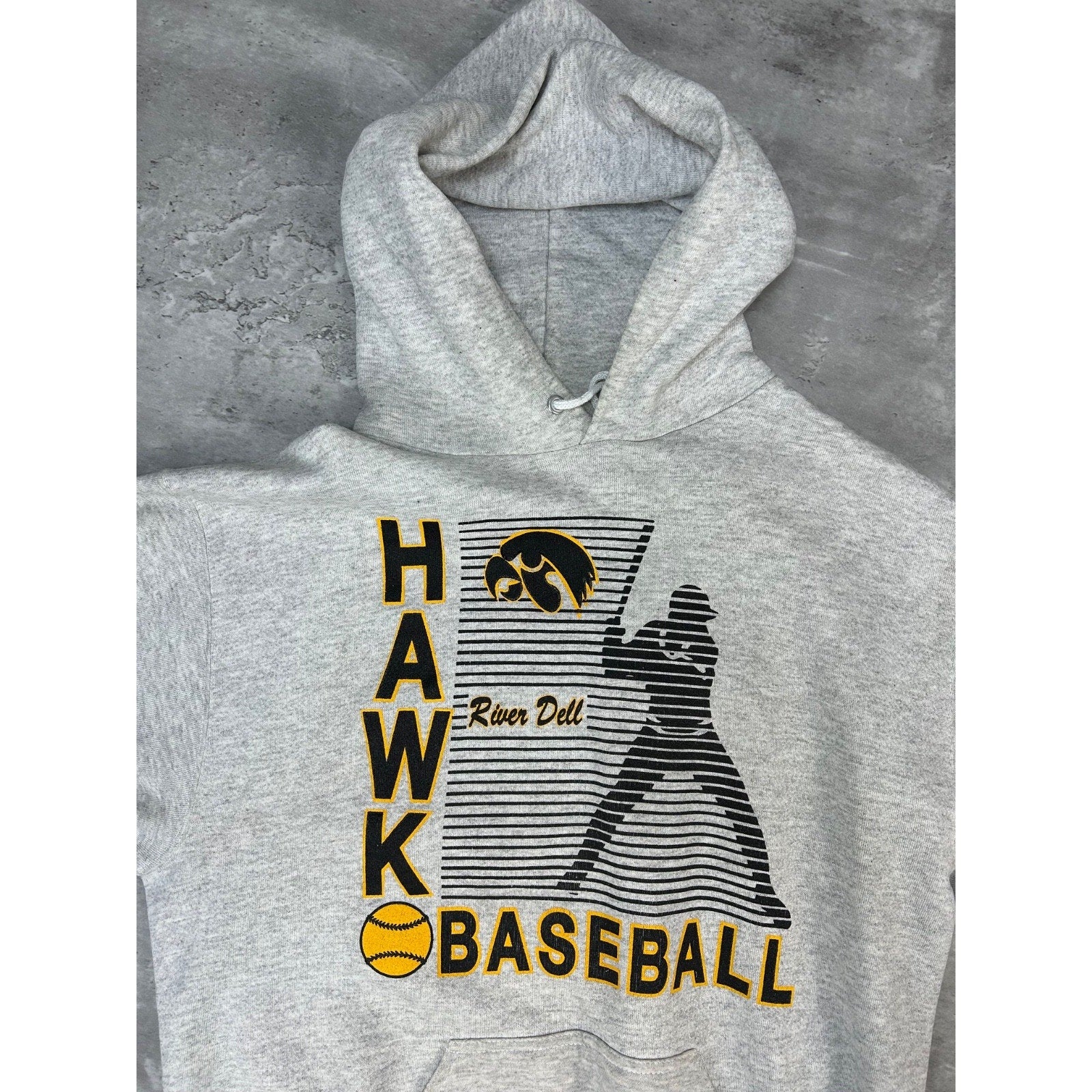 Vintage 90s River Dell Hawks NCAA Baseball Graphic Hooded Sweatshirt Size Large