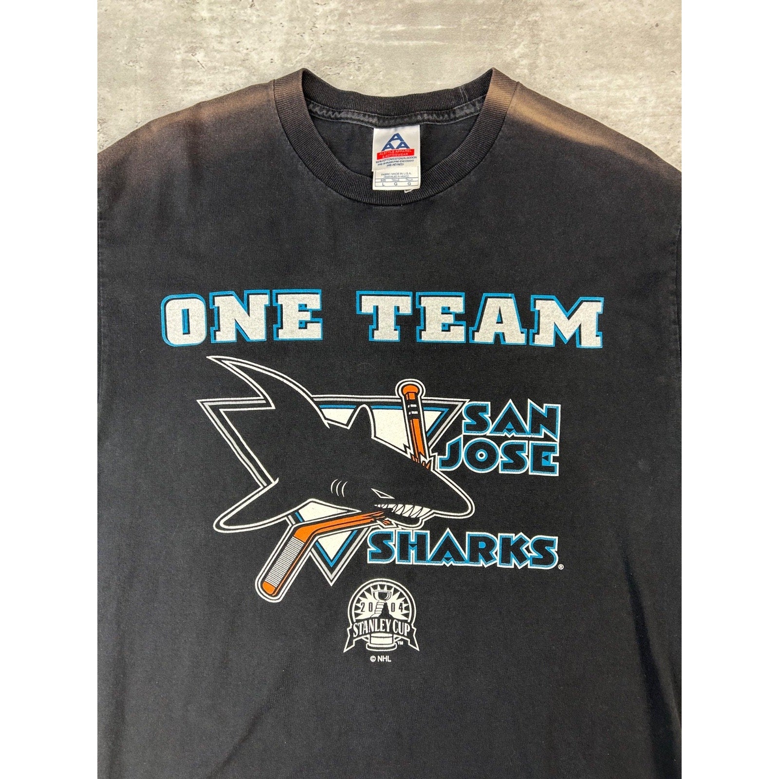 Vintage 90s San Jose Sharks NHL One Team One Goal Graphic T-Shirt Size Large