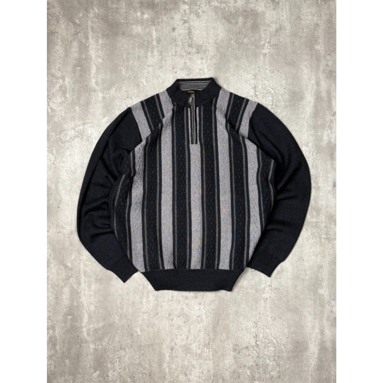 Vintage 90s Sergio Louis Italy Striped 1/4 Zip Knit Sweater Size Large
