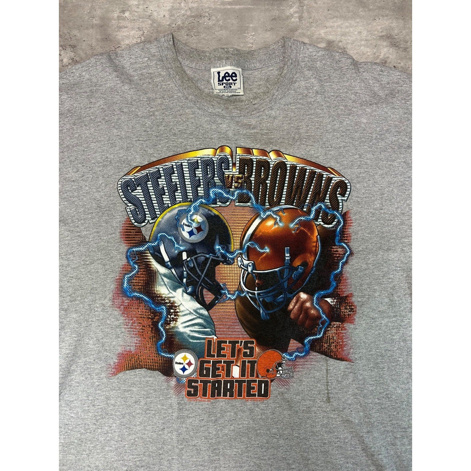 Vintage 90s Steelers Vs Browns NFL Helmet Graphic Football T-Shirt Size 2XL