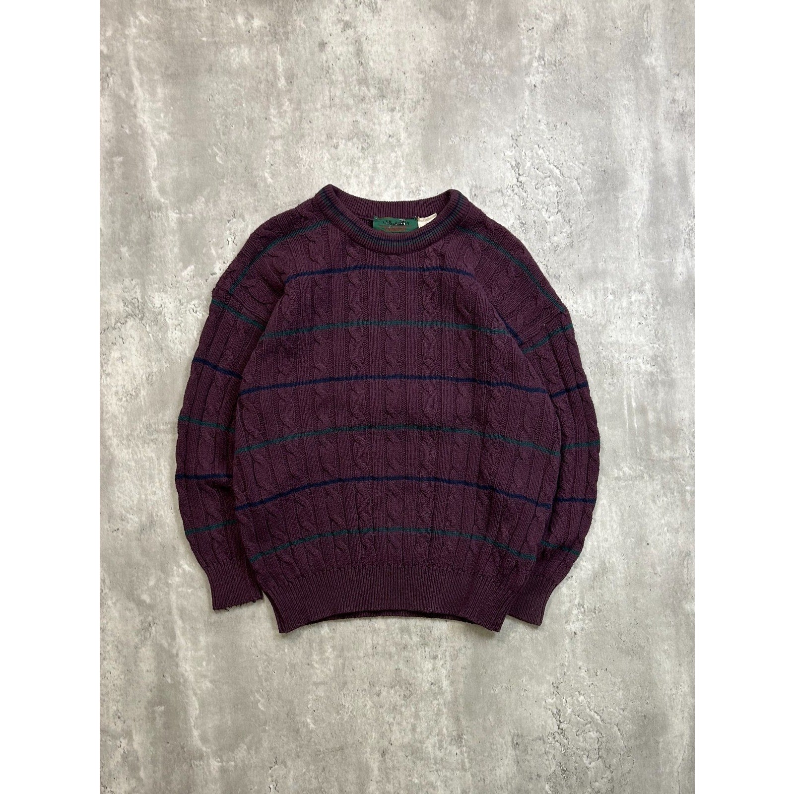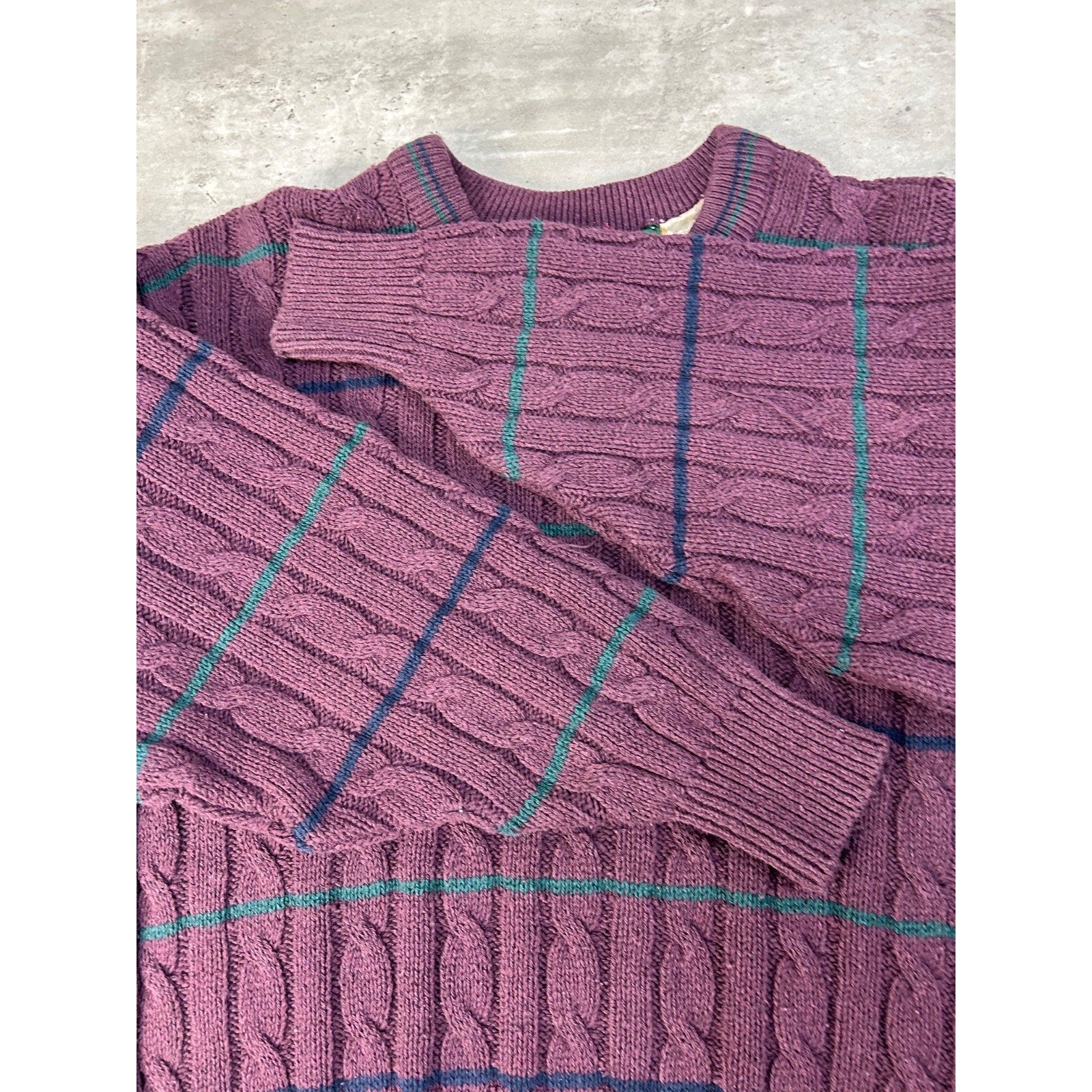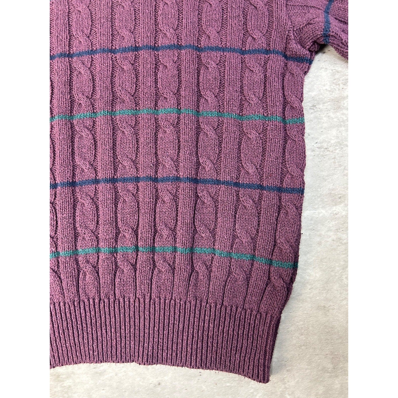 Vintage 90s Striped Cable Knit Pull Over Ribbed Sweater Size Medium