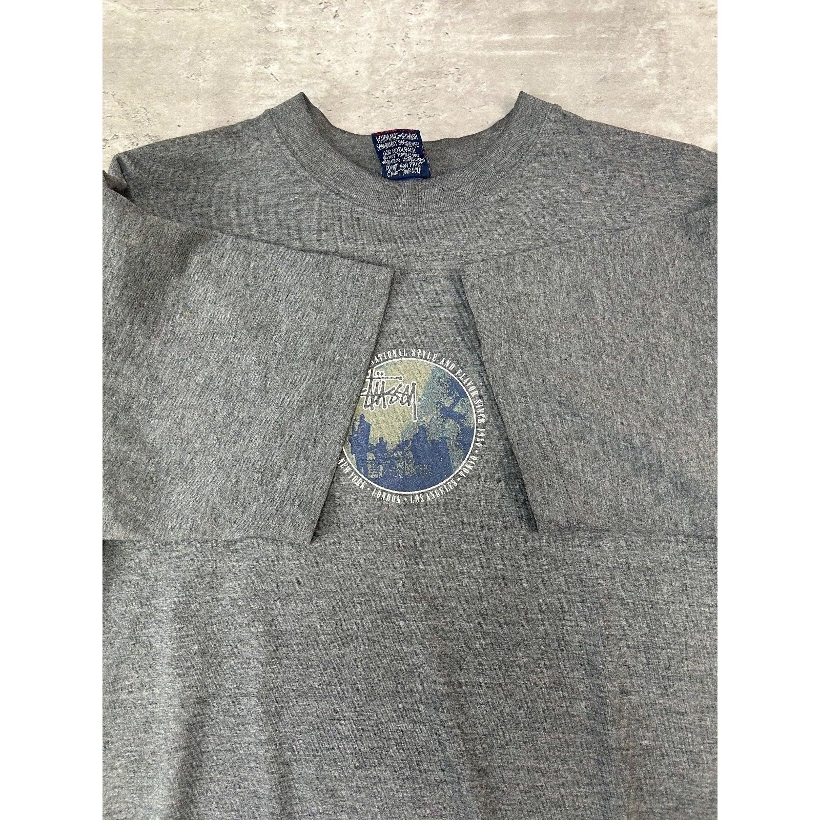 Vintage 90s Stussy International Circle Spellout Graphic T-Shirt Size Medium