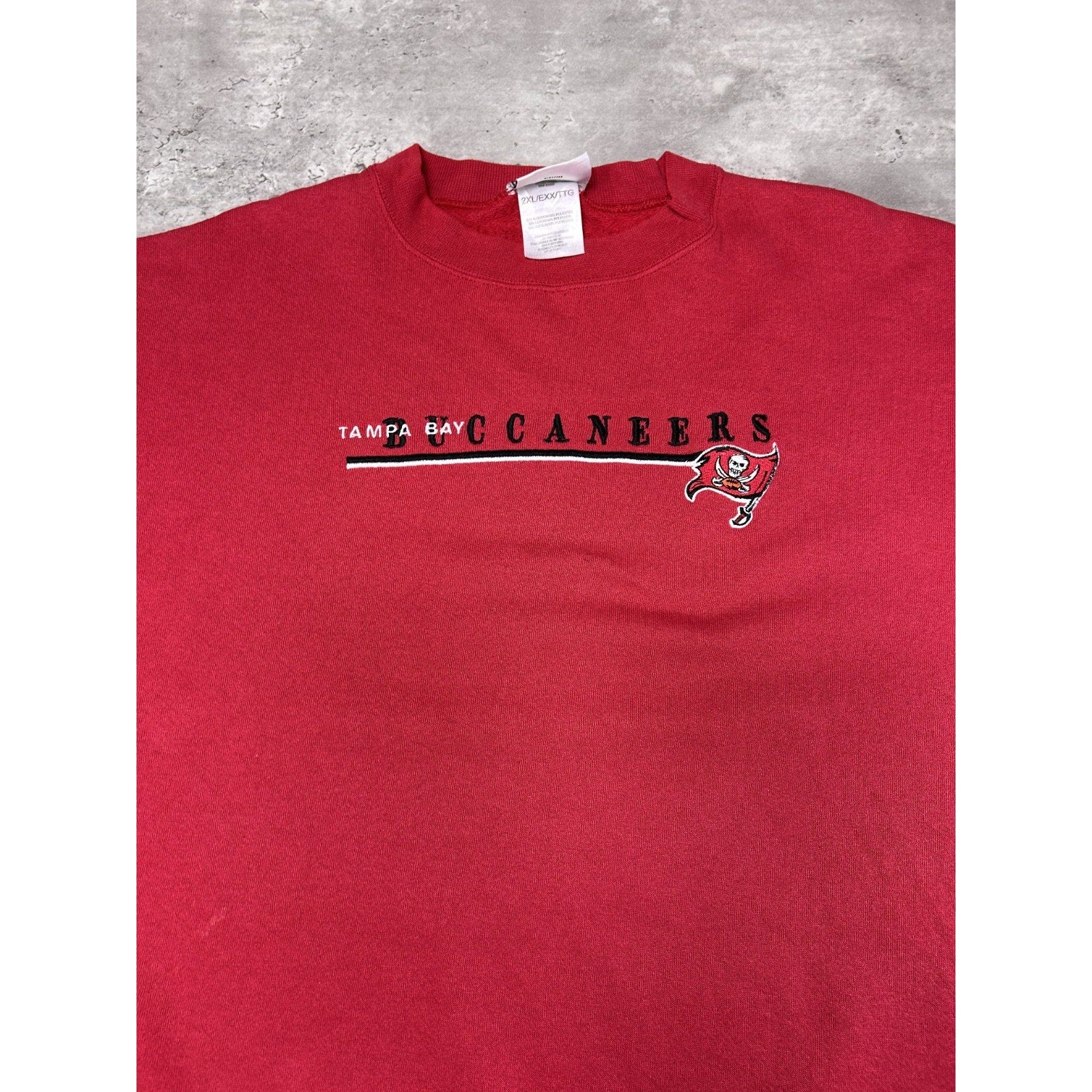 Vintage 90s Tampa Bay Buccaneers NFL Embroidered Spellout Sweatshirt Size 2XL