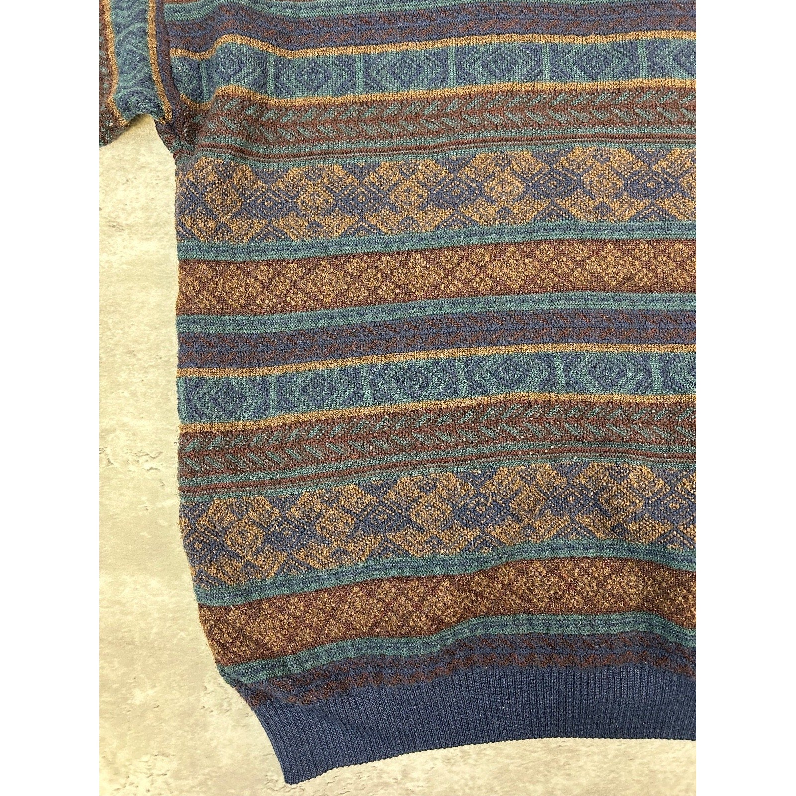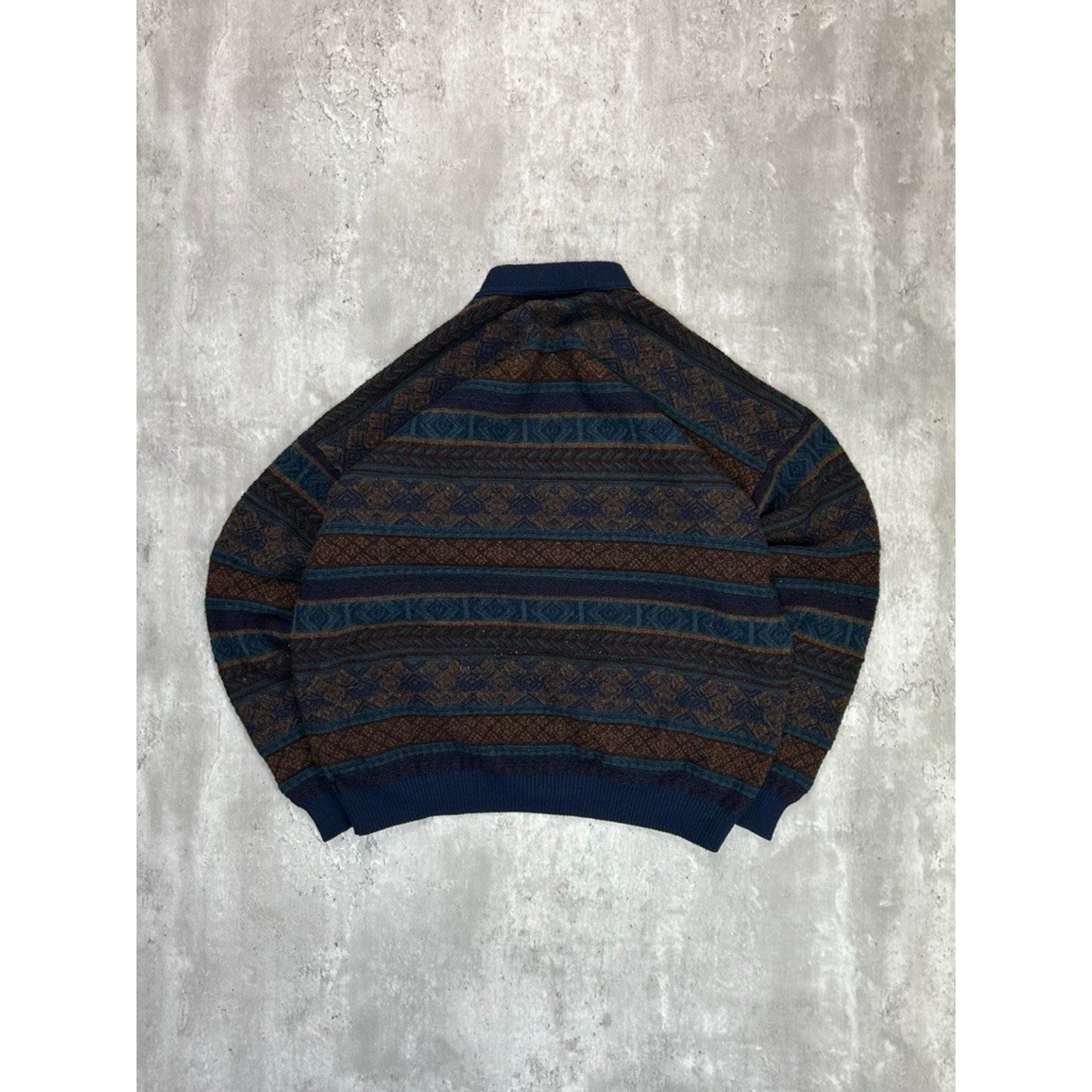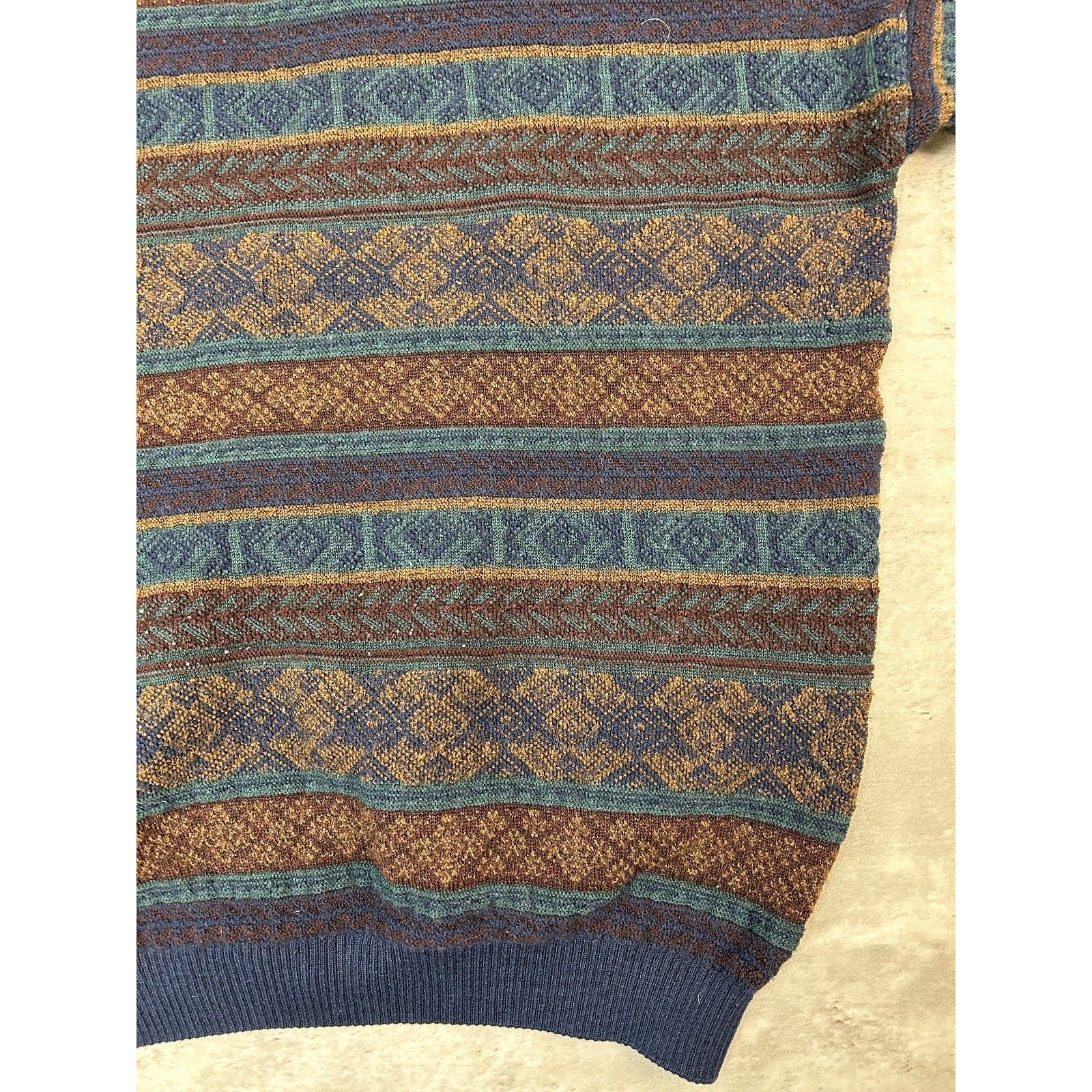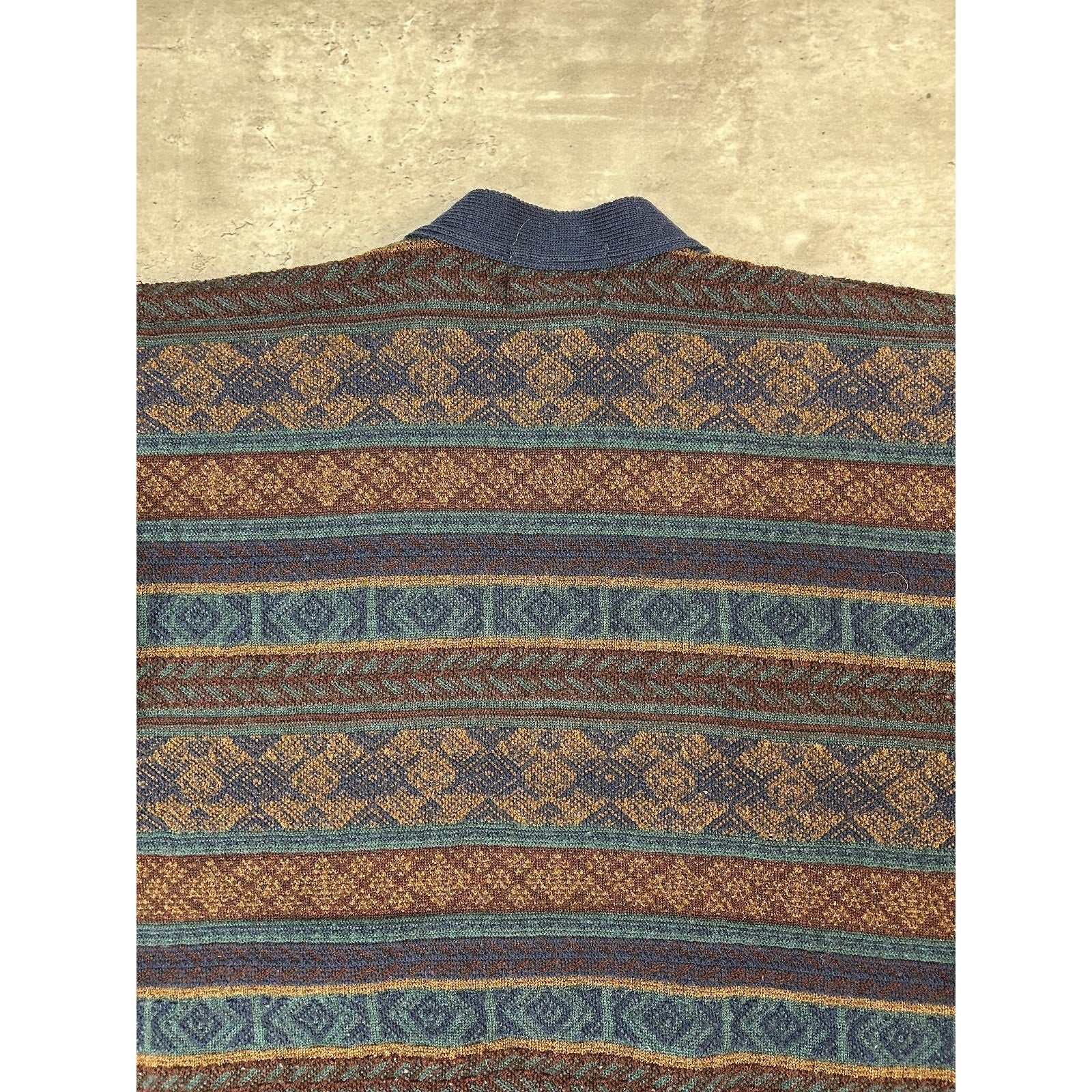 Vintage 90s Tosani Abstract Striped Knit Cardigan Sweater Size XL