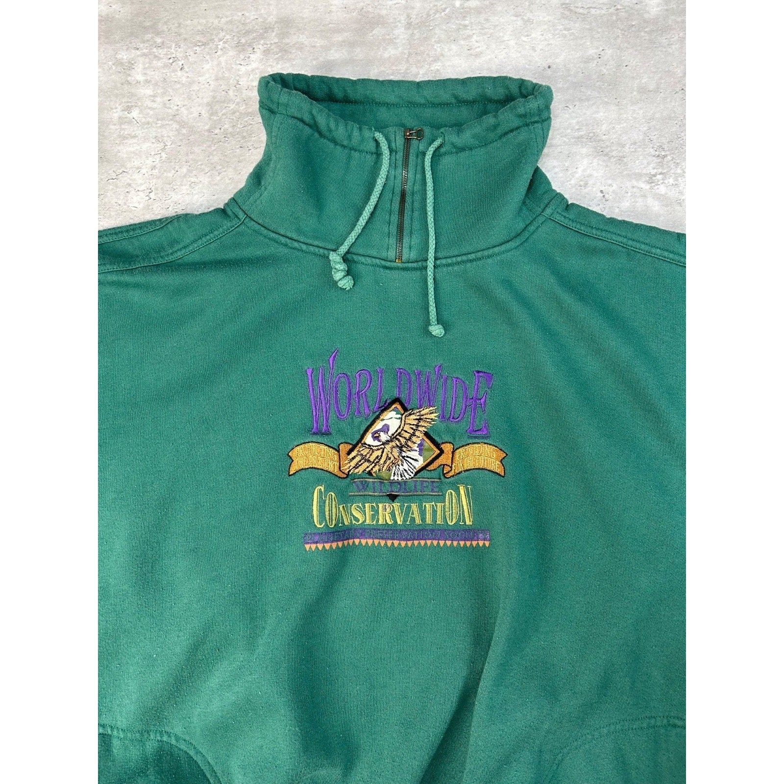 Vintage 90s Wildlife Conservation Embroidered Eagle Crest Sweatshirt Size XL