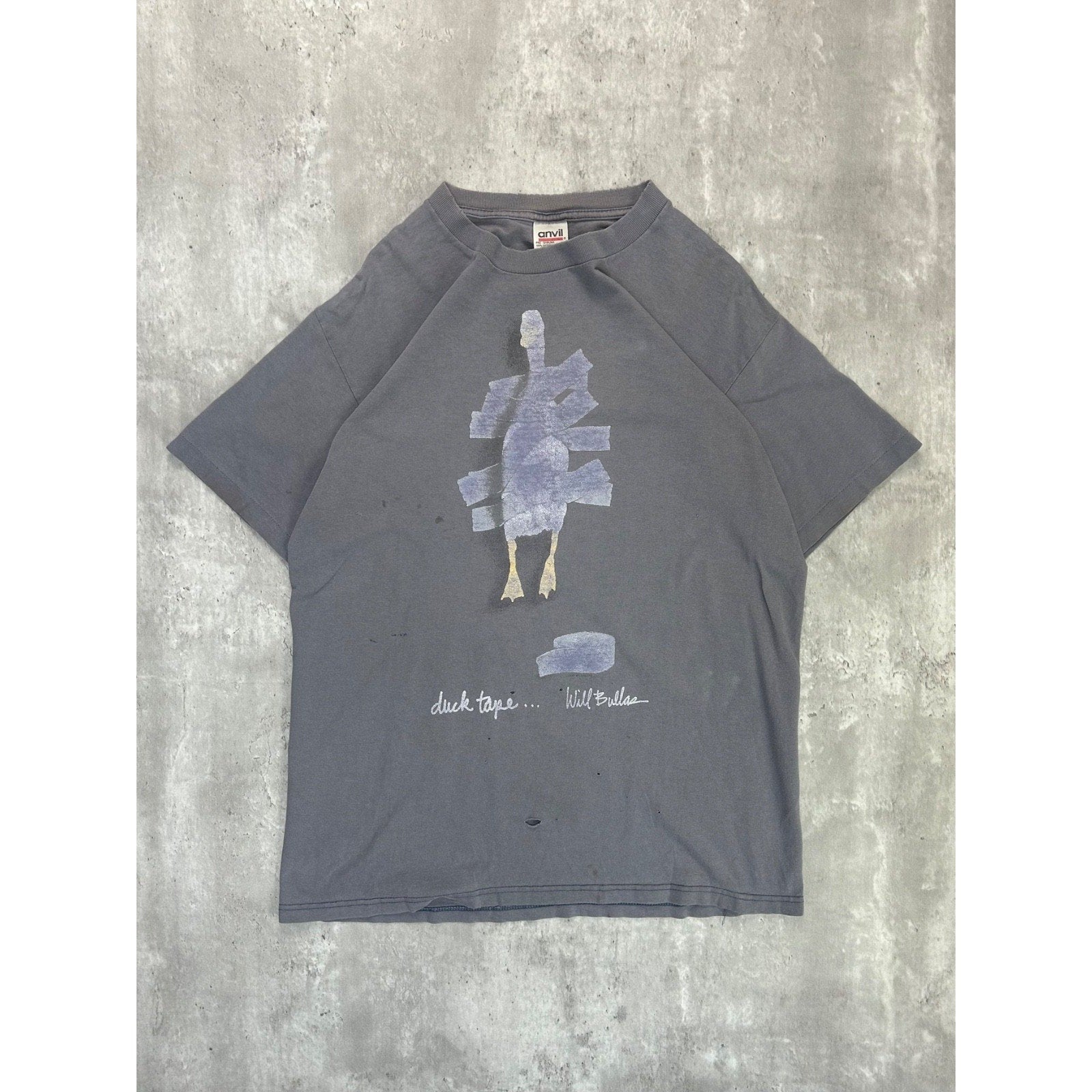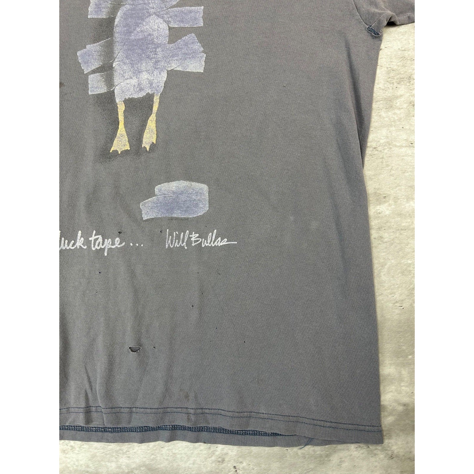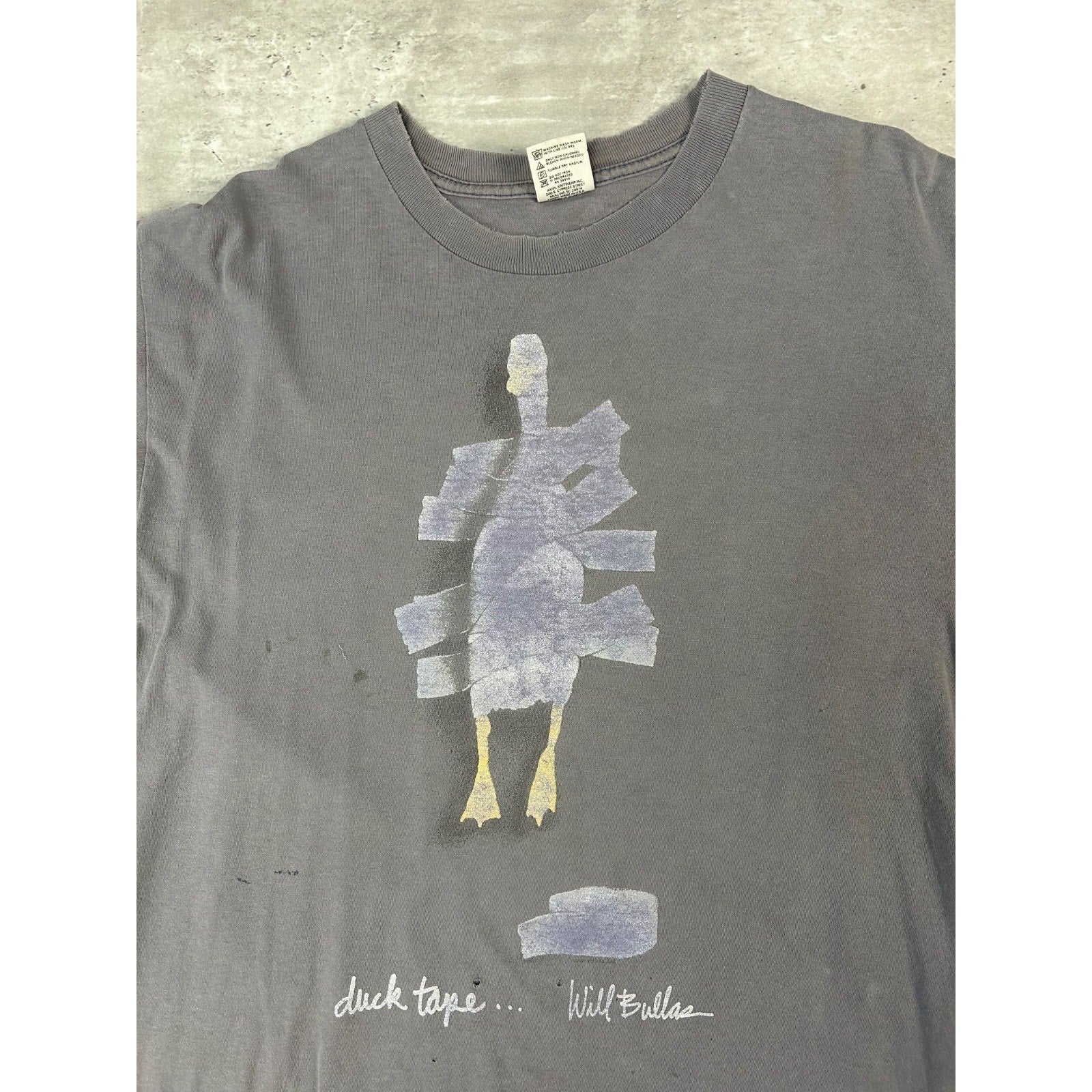 Vintage 90s Will Bullas Duck Tape Art Graphic T-Shirt Size Large Black