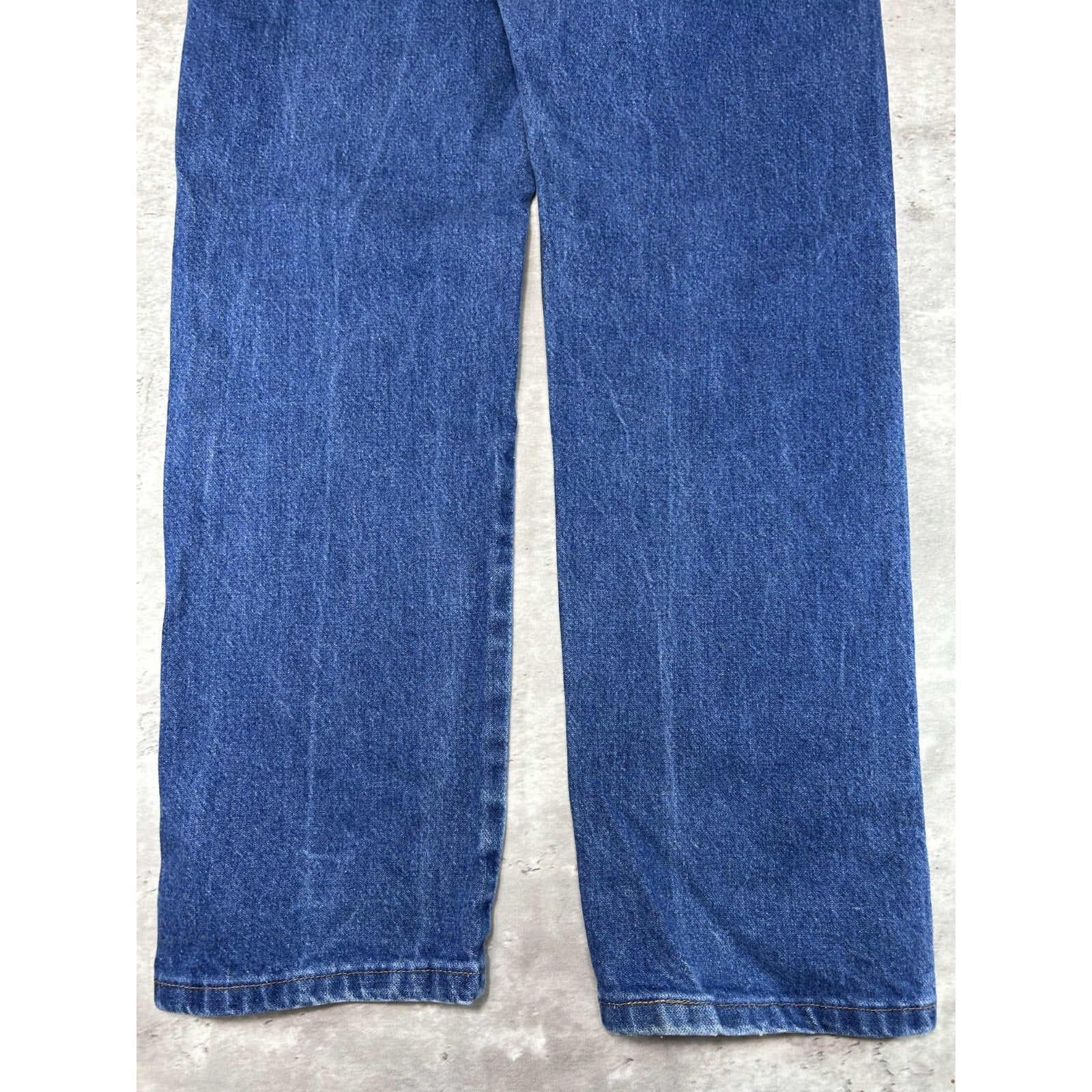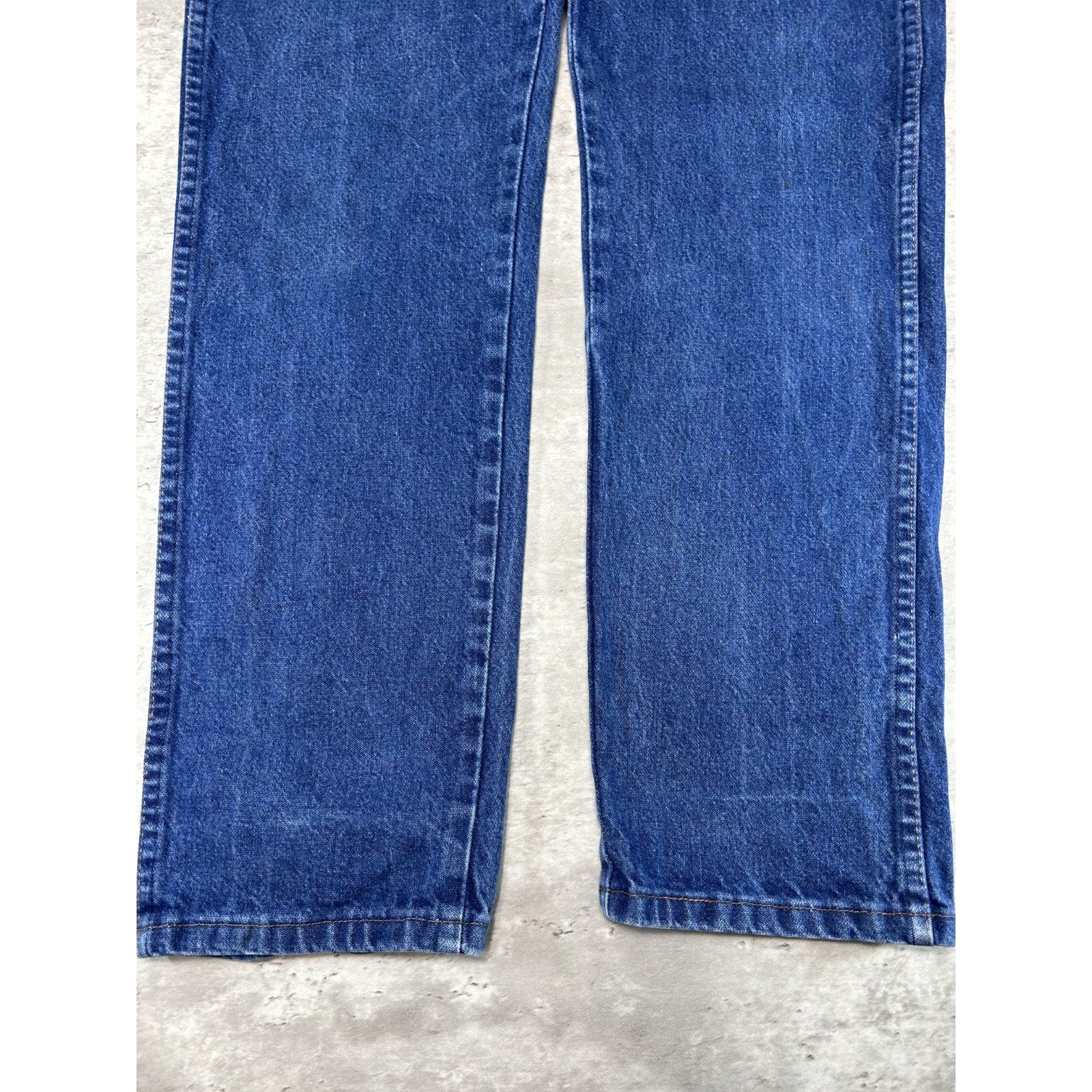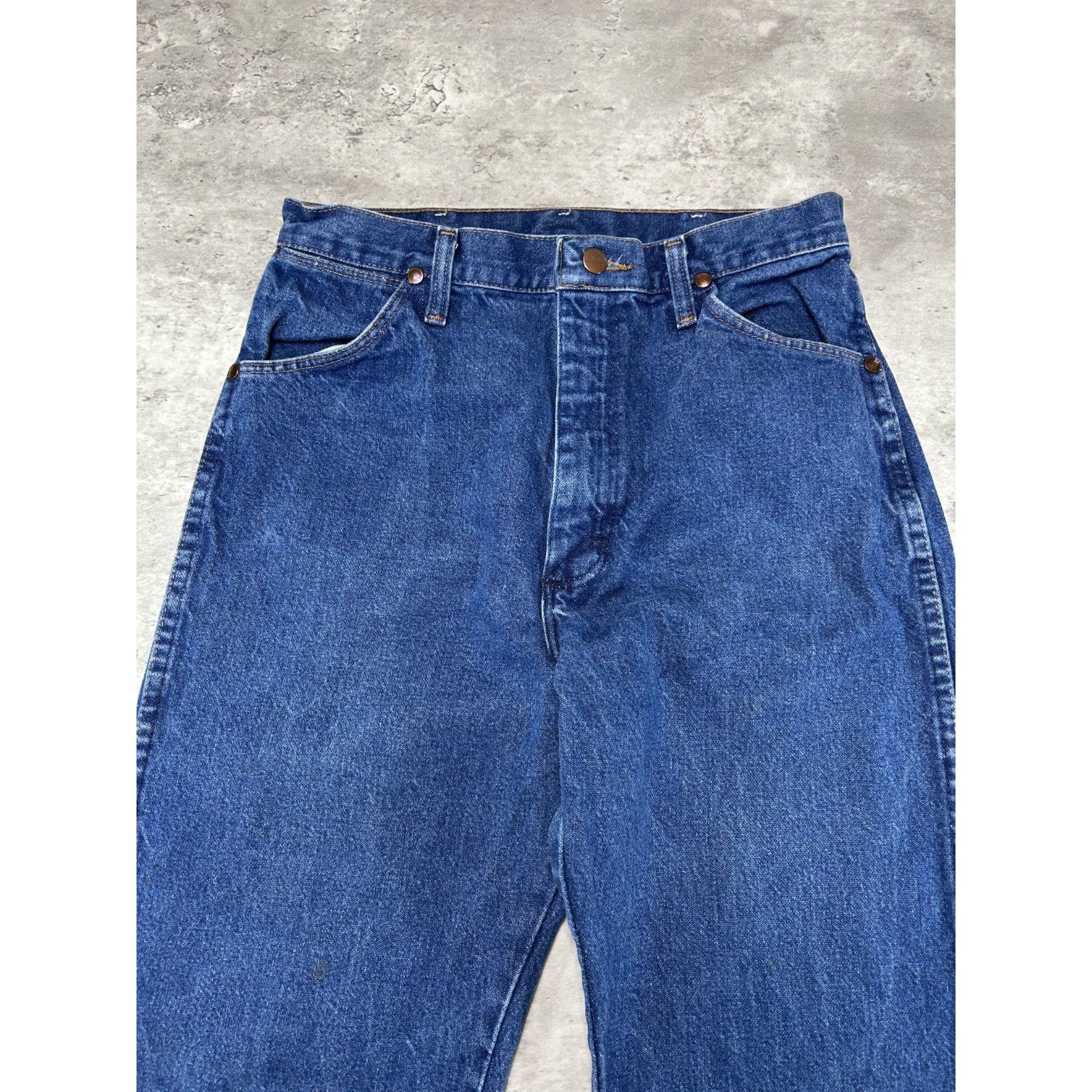 Vintage 90s Wrangler Leather Patch Dark Wash Denim Pants Size 29 Blue