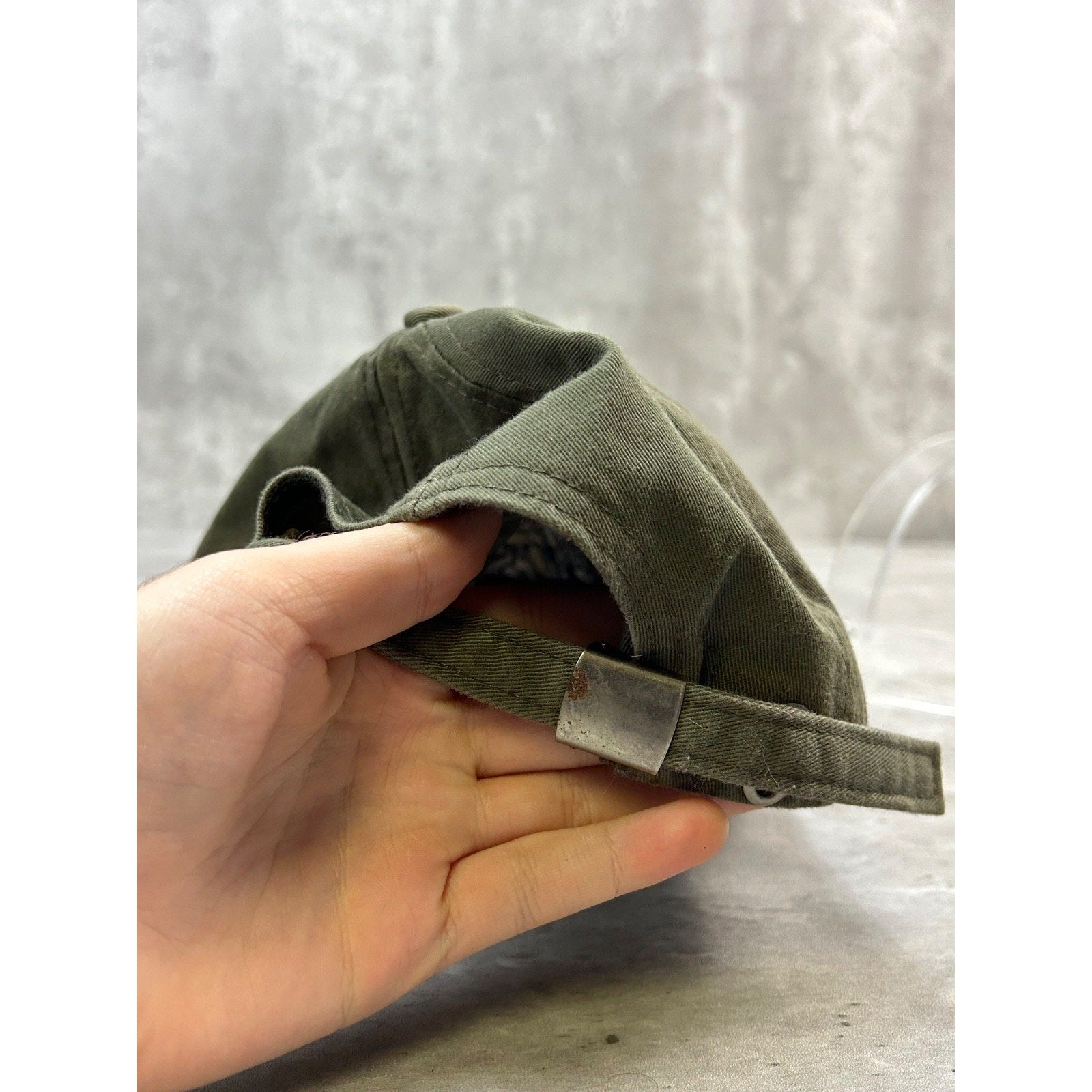 General wear due to age. Minor creasing on dome. Wear on metal buckle.